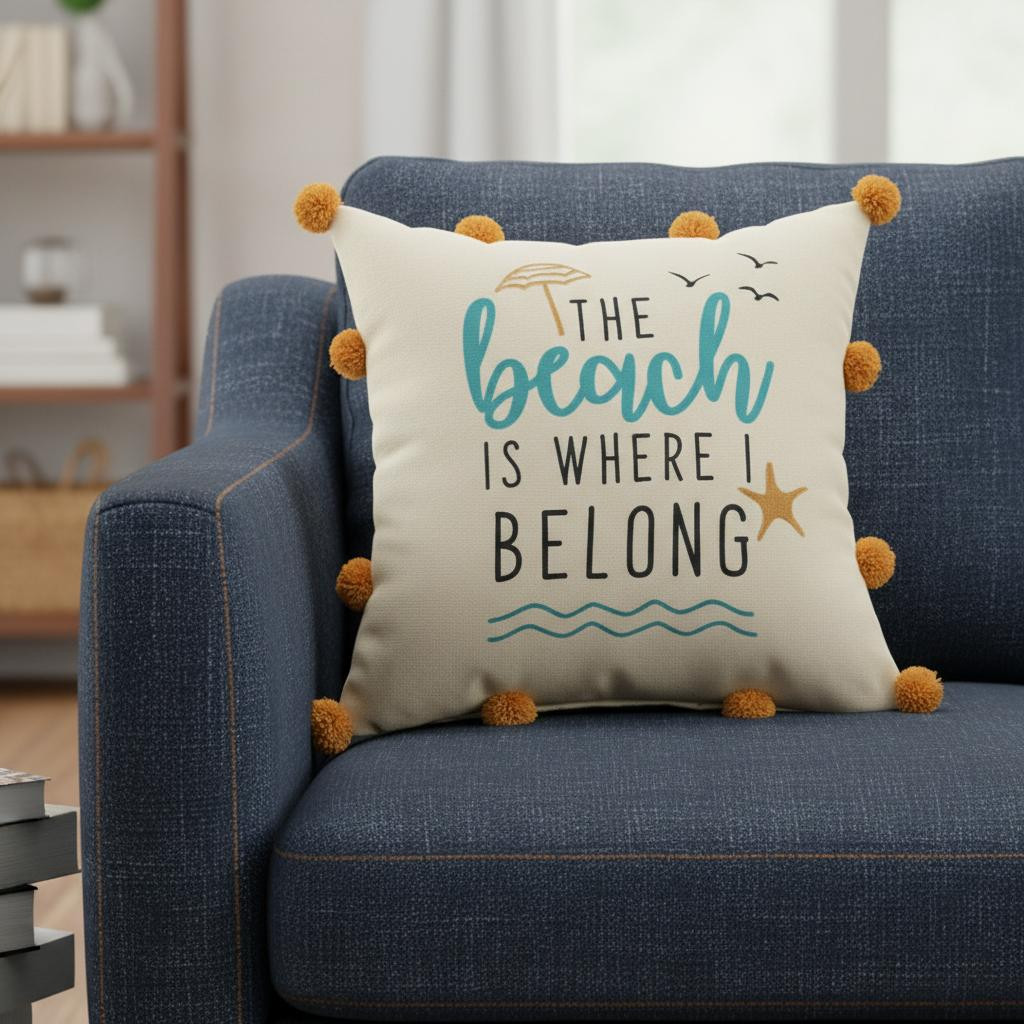 Bring a bit of fashion and zip to your space with this eye-catching and comfy 18-inch beige and orange the beach is where i belong throw pillow. This soft and durable decorative pillow is expertly made of high grade, long lasting polyester in a beige and orange coloration. This soft polyfill filled pillow not only is decorative but made to be comfy and cozy all day long. Great to use on its own or mix with other decorations for the perfect look. A great decorative accessory to add color and dimension to your favorite chair, accent your sofa, or to use as part of your bed ensemble. 18.00-inch h x 18.00-inch w x 7.00-inch d.