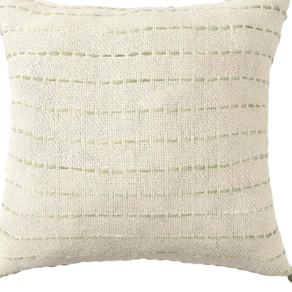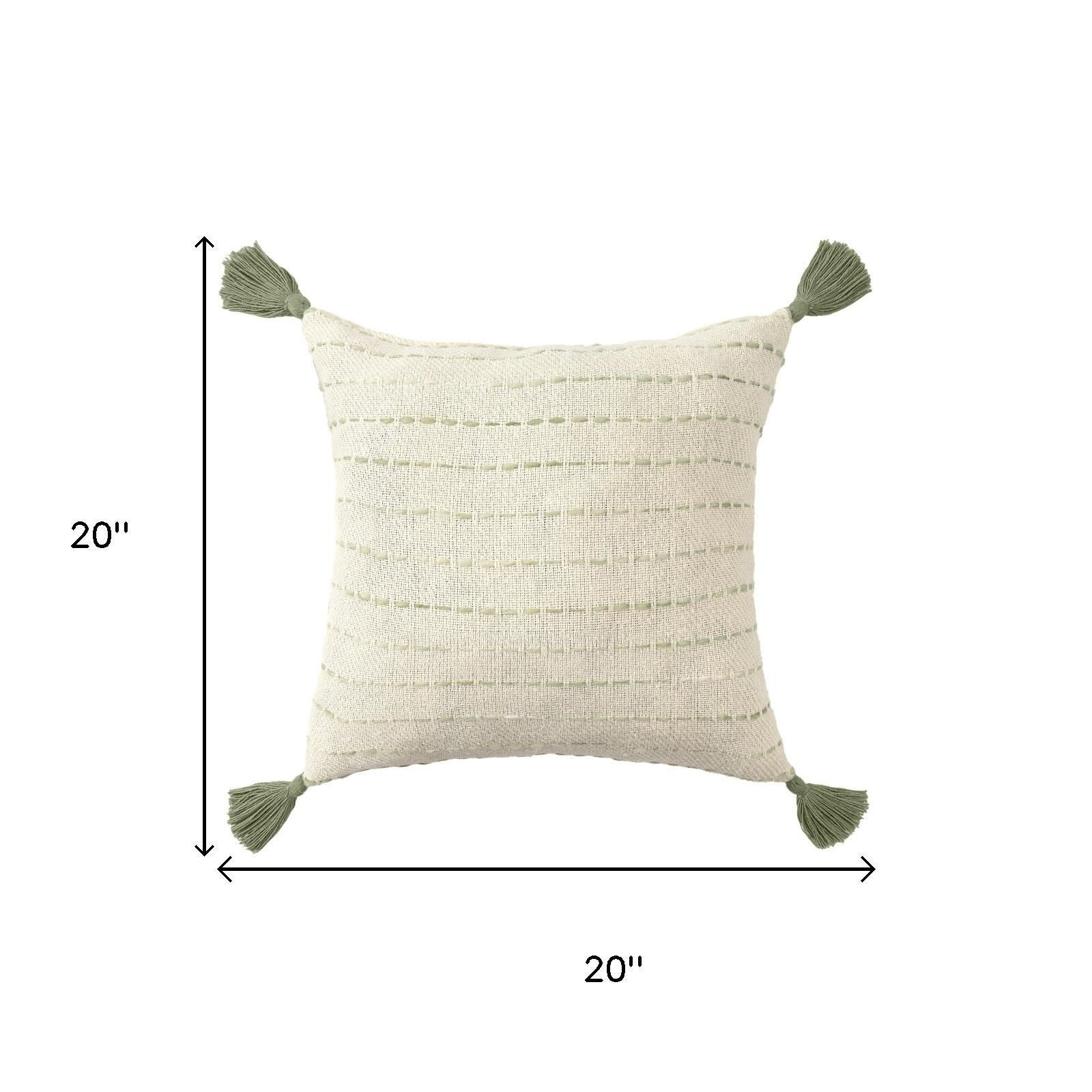 The perfect complement to your sofa, favorite chair, or bed, this 20-inch green and ivory striped cotton blend throw pillows is a great decorative accent. This green and ivory colored decorative pillow set is made from high grade cotton blend that is durable and soft to the touch. Super soft and built to hold its shape, this polyester-filled pillow is a great option. For anyone that loves to decorate or accent their space with color and texture. A great decorative accessory to add color and dimension to your favorite chair, accent your sofa, or to use as part of your bed ensemble. 20.00-inch h x 20.00-inch w x 8.00-inch d.