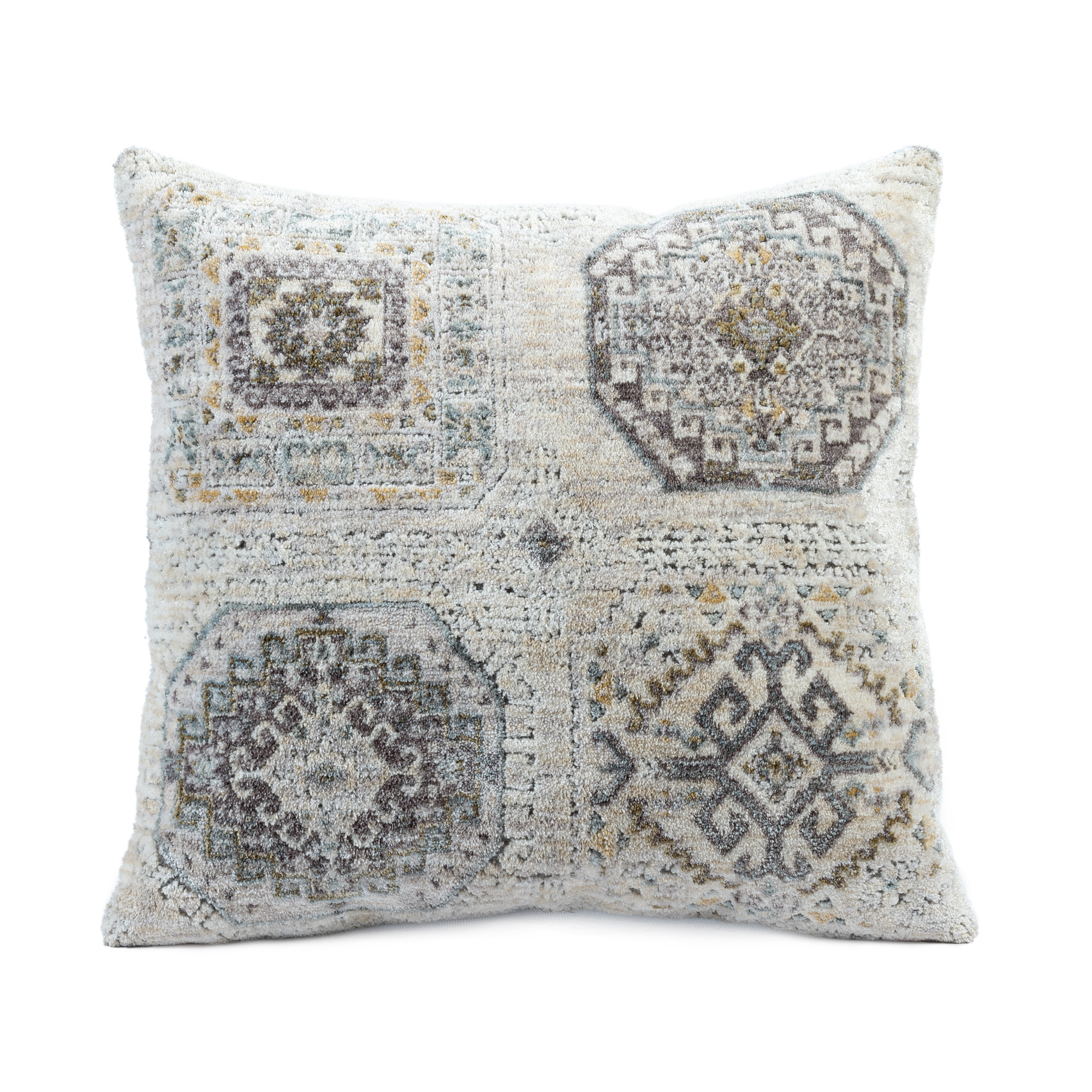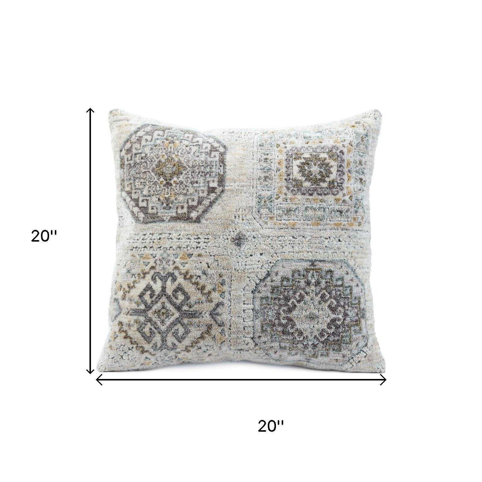 The 20-inch gray and ivory medallion throw pillows is the perfect decorative accessory for your home. Ultra durable gray and ivory polyester has been used to make this decorative pillow set a beautiful look that will stand the test of time. Super soft and built to hold its shape, this polyester-filled pillow is a great option. Great to use on its own or mix with other decorations for the perfect look. Decorative throw pillows not only add color and dimension to your space but can be comfy and supportive when you are lounging and cuddling as well. 20.00-inch h x 20.00-inch w x 8.00-inch d.