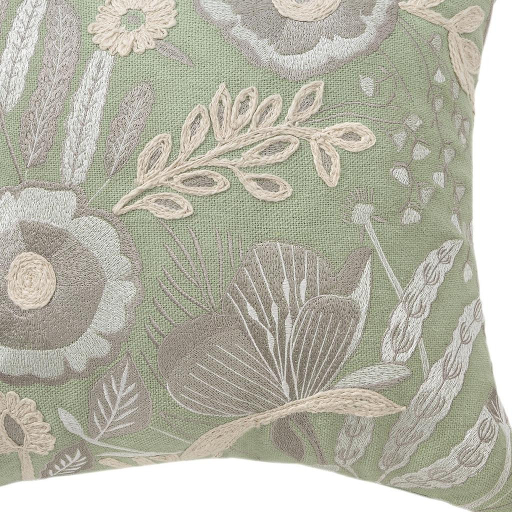 This 20-inch green and ivory floral cotton throw pillows will add a beautiful decorative accent to your decor. This green and ivory colored decorative pillow set is made from high grade cotton that is durable and soft to the touch. This soft polyester filled pillow not only is decorative but made to be comfy and cozy all day long. Decorative pillows are a great way to change up the look and feel of your space easily and quickly. A great decorative accessory to add color and dimension to your favorite chair, accent your sofa, or to use as part of your bed ensemble. 20.00-inch h x 20.00-inch w x 8.00-inch d.