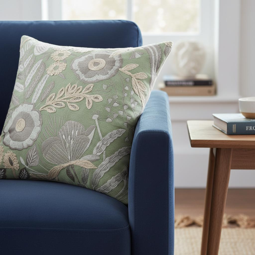 ivory floral cotton throw pillow, floral cotton throw pillow, cotton throw pillow, 20" green ivory floral cotton, green ivory floral cotton throw |