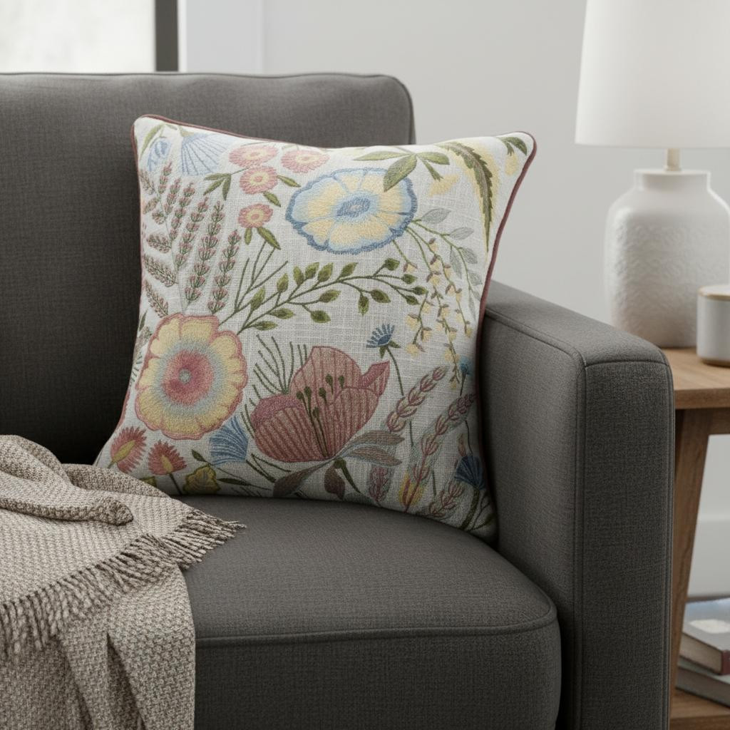 This 20-inch ivory slate blue terra cotta and sage floral cotton throw pillow will add a beautiful decorative accent to your decor. This ivory, slate blue, terra cotta, and sage hued piece represents quality construction, expertly made from durable cotton that is not only long lasting but soft to the touch as well. This soft polyfill filled pillow not only is decorative but made to be comfy and cozy all day long. Great to use on its own or mix with other decorations for the perfect look. A great decorative accessory to add color and dimension to your favorite chair, accent your sofa, or to use as part of your bed ensemble. 20.00-inch h x 20.00-inch w x 8.00-inch d.