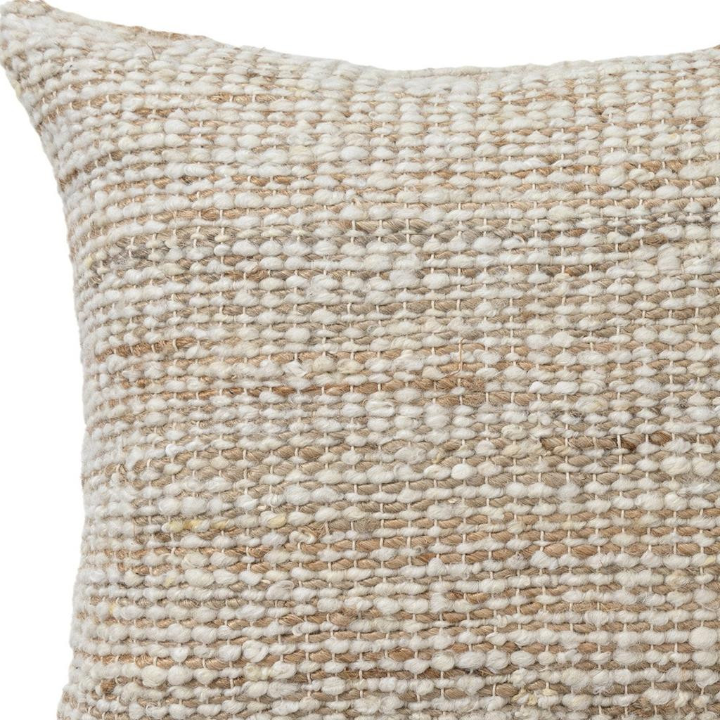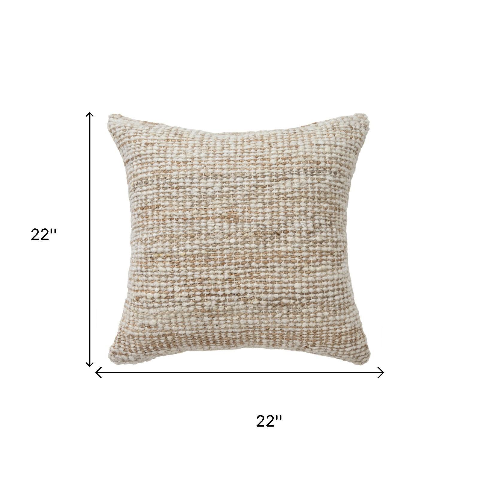 Bring a bit of fashion and zip to your space with this eye-catching and comfy 22-inch ivory and beige striped wool blend throw pillows. The ivory and natural coloring of the extremely durable and long lasting wool blend will add dimension and texture to your space. Super soft and built to hold its shape, this polyfill-filled pillow is a great option. For anyone that loves to decorate or accent their space with color and texture. Decorative throw pillows not only add color and dimension to your space but can be comfy and supportive when you are lounging and cuddling as well. 22.00-inch h x 22.00-inch w x 9.00-inch d.
