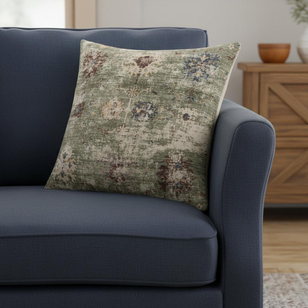 sage cream floral throw pillow, 18" sage cream floral throw, cream floral throw pillow, 18" sage cream floral, floral throw pillow |