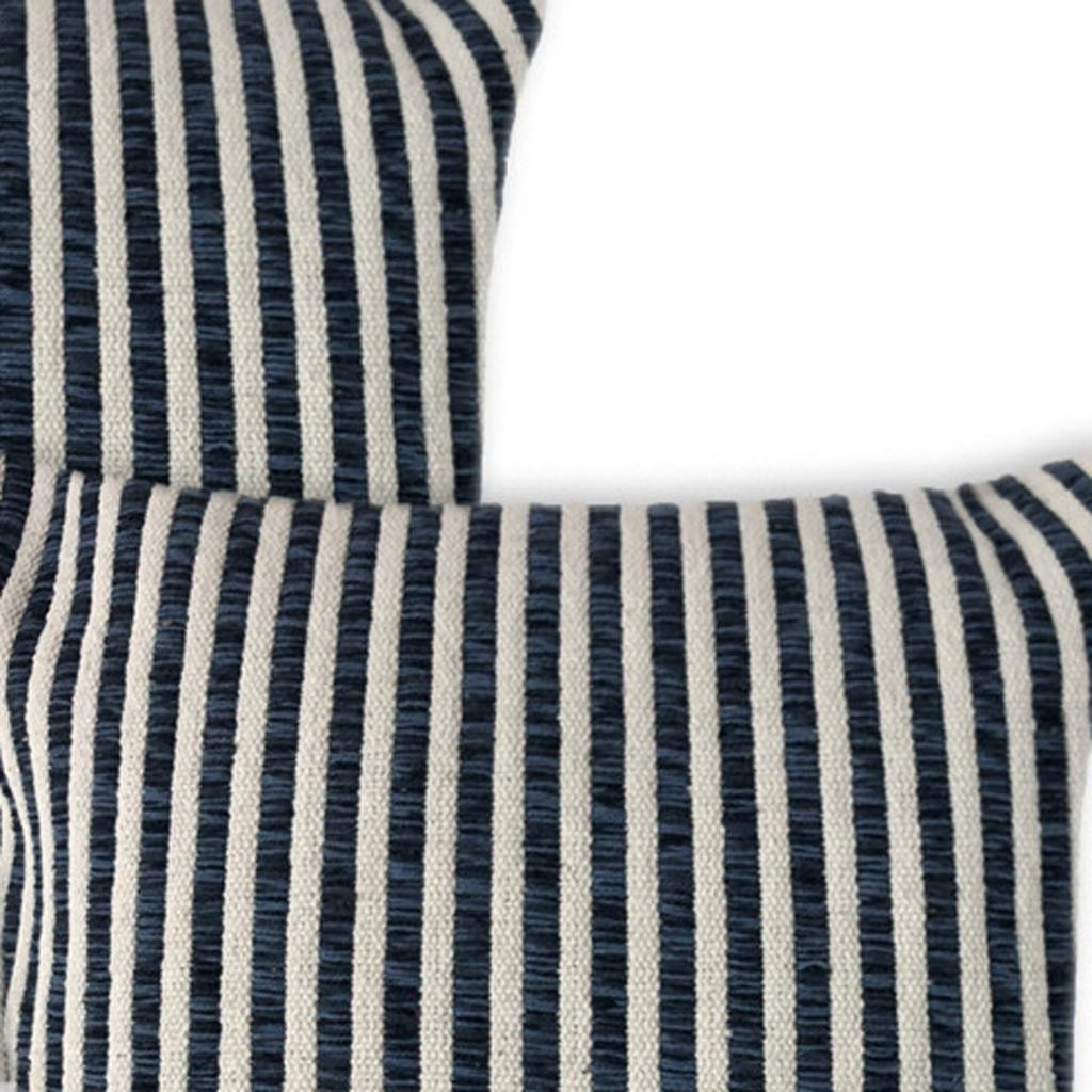 The perfect complement to your sofa, favorite chair, or bed, this set of two 22-inch blue and white striped cotton throw pillows is a great decorative accent. These blue and white hued pillows represent quality construction, expertly made from durable cotton that is not only long lasting but super soft to the touch as well. This soft polyester filled pillow not only is decorative but made to be comfy and cozy all day long. Great to use on its own or mix with other decorations for the perfect look. Decorative throw pillows not only add color and dimension to your space but can be comfy and supportive when you are lounging and cuddling as well. 22.00-inch h x 22.00-inch w x 4.00-inch d.