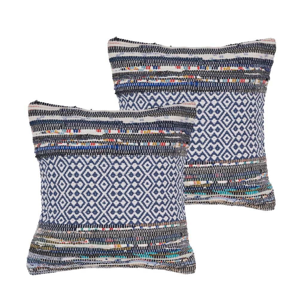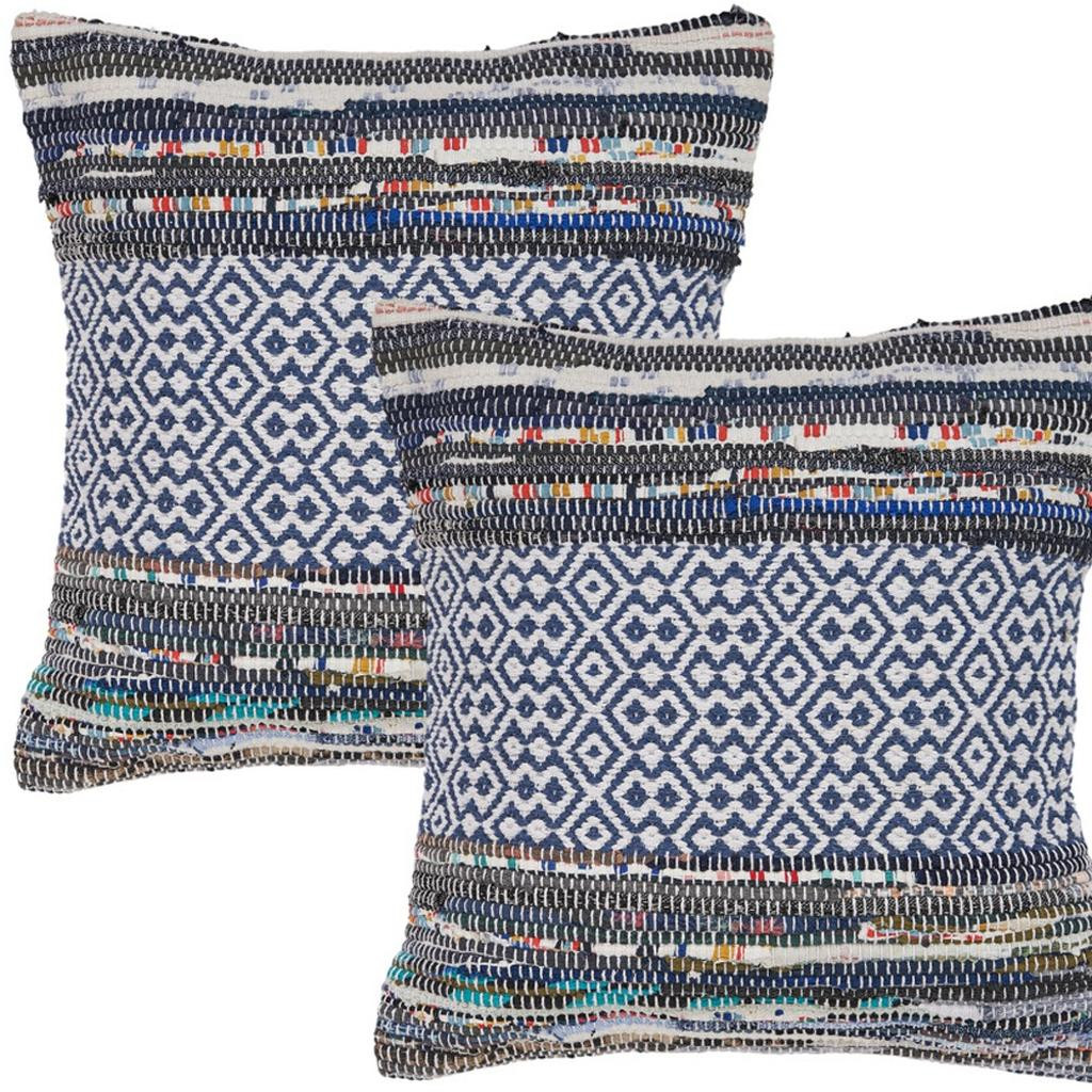 This set of two 18-inch blue and white striped cotton blend throw pillows will add a beautiful decorative accent to your decor. The blue and white coloring of the extremely durable and long lasting cotton blend pillows will add dimension and texture to your space. This soft polyester filled pillow not only is decorative but made to be comfy and cozy all day long. Great to use on its own or mix with other decorations for the perfect look. Decorative throw pillows not only add color and dimension to your space but can be comfy and supportive when you are lounging and cuddling as well. 18.00-inch h x 18.00-inch w x 4.00-inch d.
