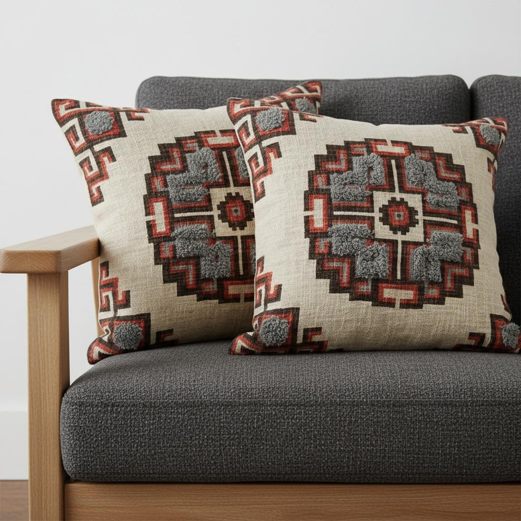beige geometric cotton throw pillows, geometric cotton throw pillows, cotton throw pillows, 18" brown beige geometric cotton, brown beige geometric cotton throw |