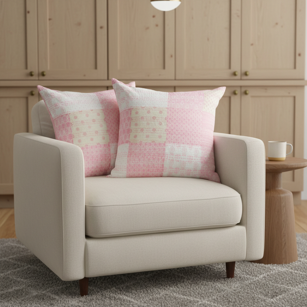 white patchwork cotton throw pillows, cotton throw pillows, patchwork cotton throw pillows, 20" pink white patchwork cotton, set 20" pink white |
