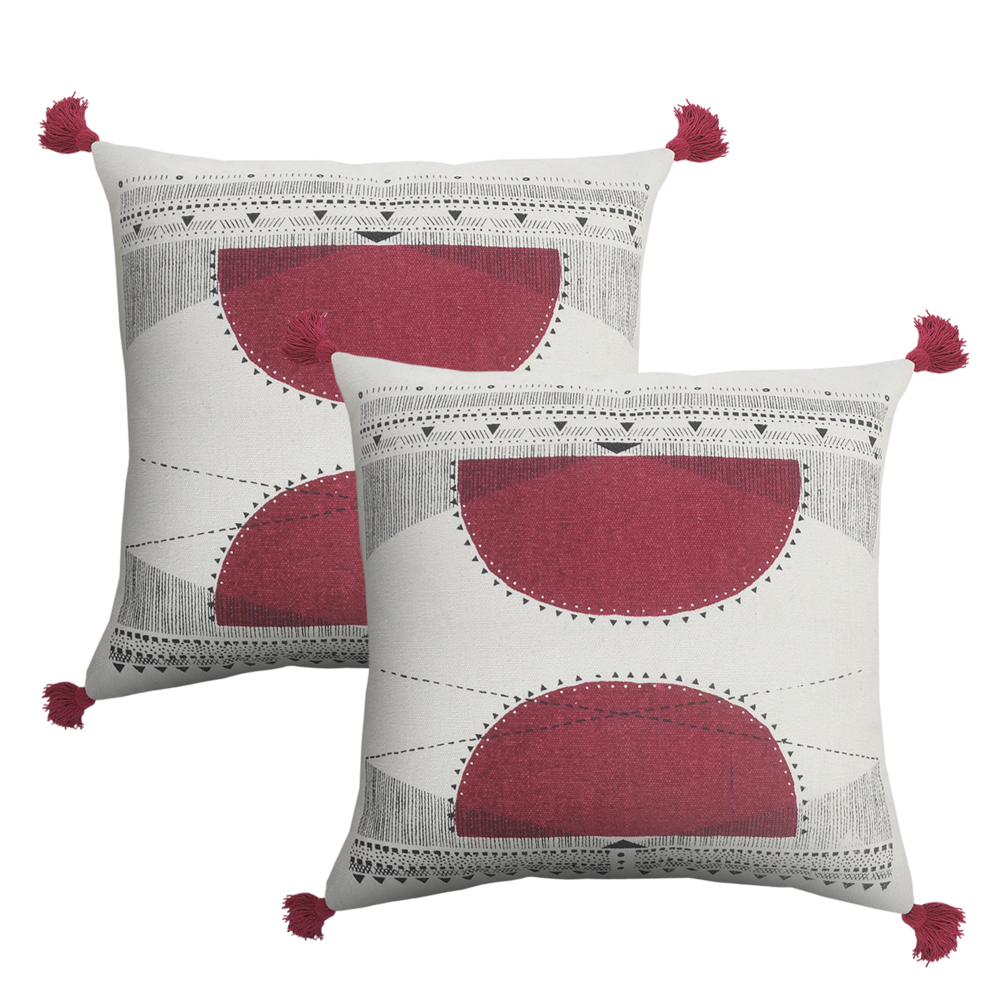 The perfect complement to your sofa, favorite chair, or bed, this set of two 20-inch white and black geometric cotton throw pillows is a great decorative accent. These white and black hued pillows represent quality construction, expertly made from durable cotton that is not only long lasting but super soft to the touch as well. This soft polyester filled pillow not only is decorative but made to be comfy and cozy all day long. Great to use on its own or mix with other decorations for the perfect look. Decorative throw pillows not only add color and dimension to your space but can be comfy and supportive when you are lounging and cuddling as well. 20.00-inch h x 20.00-inch w x 4.00-inch d.