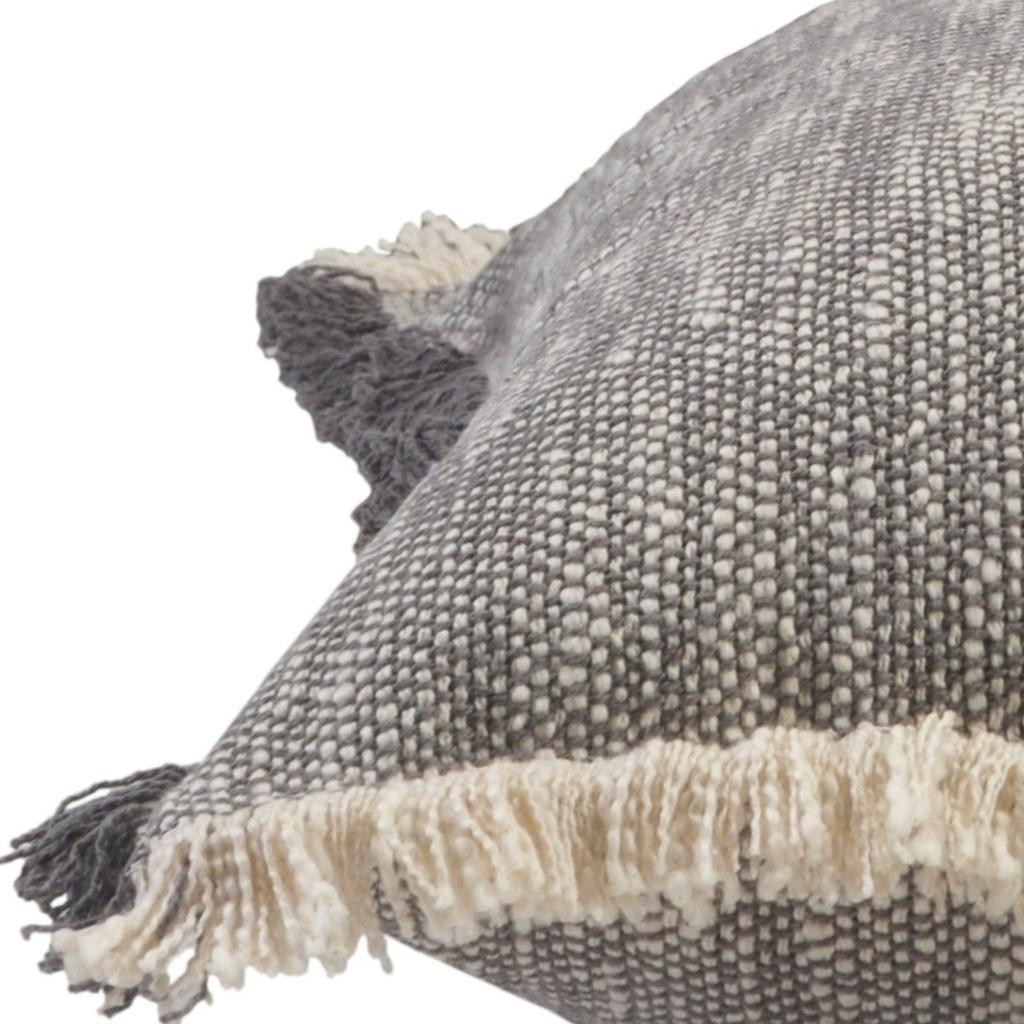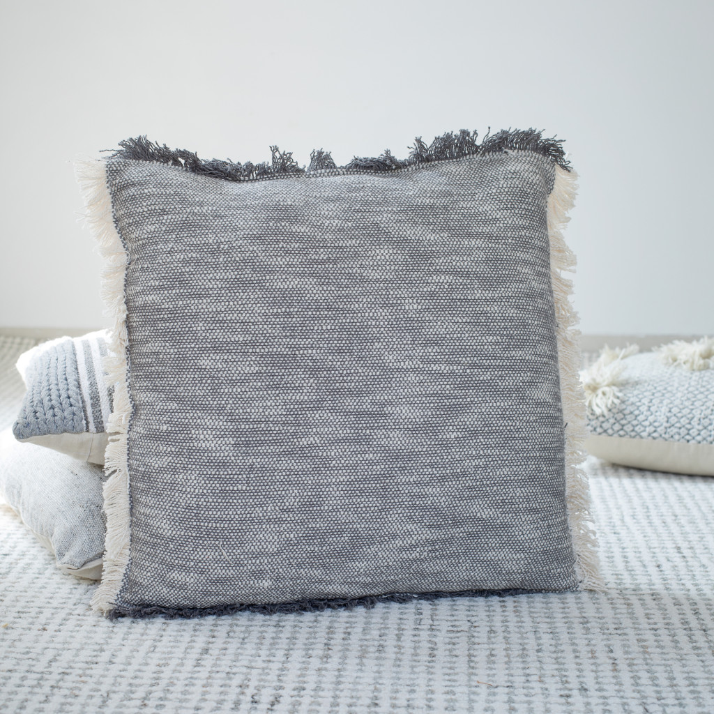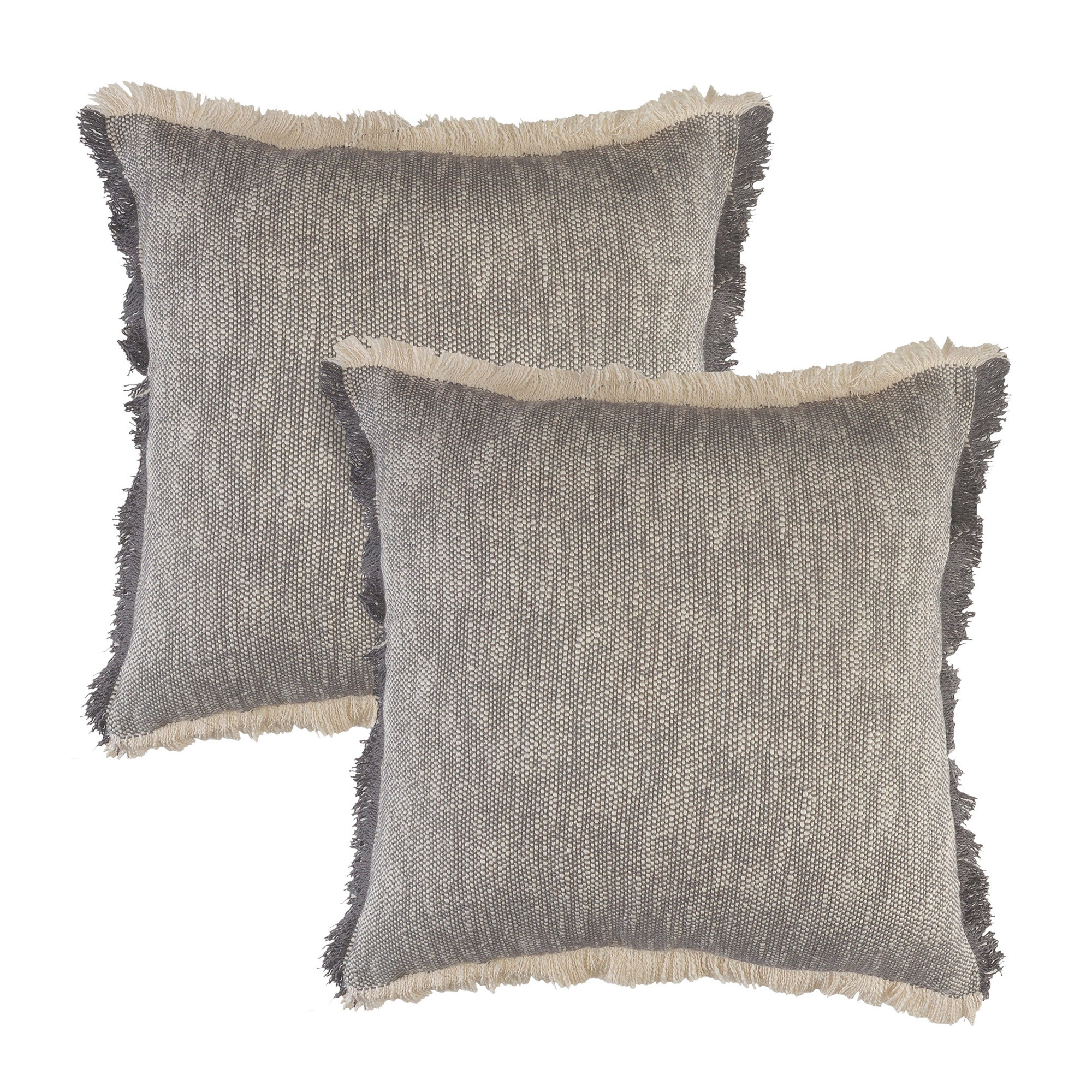 Bring a bit of fashion and zip to your space with this eye-catching and comfy set of two 20-inch gray and beige cotton throw pillows. This gray colored decorative pillow set is made from high grade cotton that is durable and soft to the touch. Super soft and built to hold its shape, this polyfill-filled pillow is a great option. Decorative pillows are a great way to change up the look and feel of your space easily and quickly. A great decorative accessory to add color and dimension to your favorite chair, accent your sofa, or to use as part of your bed ensemble. 20.00-inch h x 20.00-inch w x 8.00-inch d.