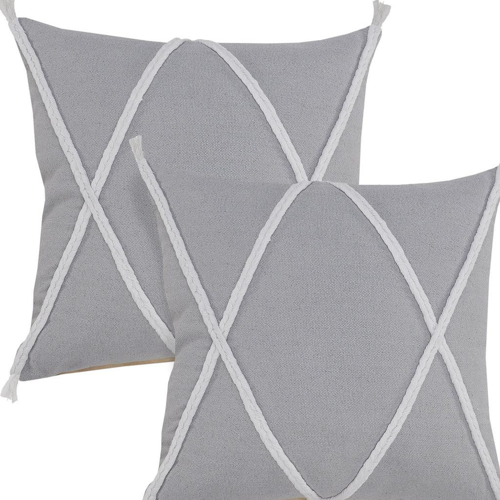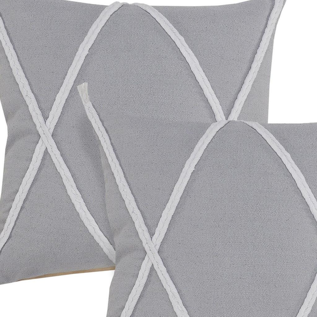 Unique and decorative, this comfortable set of two 20-inch gray and white beach geometric cotton throw pillows will leave a lasting impression. These great looking soft decorative pillows are expertly made of durable and long lasting cotton in a gray and white coloration. Super soft and built to hold its shape, this polyester-filled pillow is a great option. Decorative pillows are a great way to change up the look and feel of your space easily and quickly. A great decorative accessory to add color and dimension to your favorite chair, accent your sofa, or to use as part of your bed ensemble. 20.00-inch h x 20.00-inch w x 0.50-inch d.