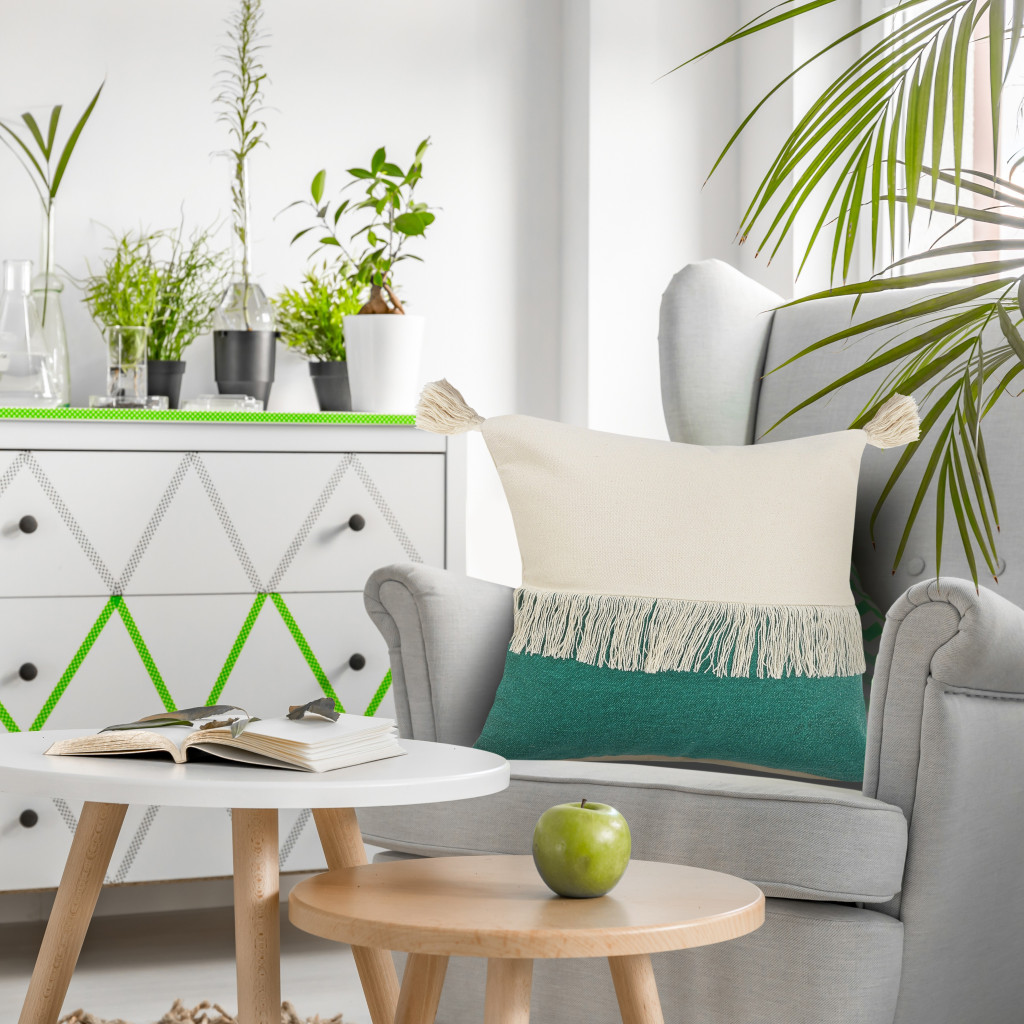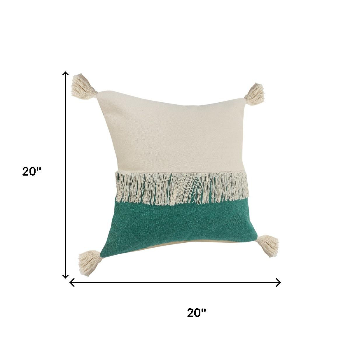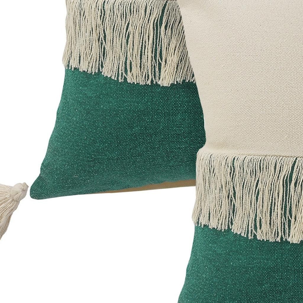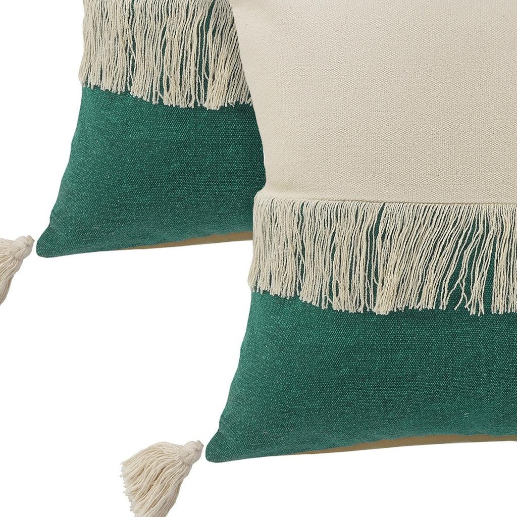 Add an air of fashion to your room and rejuvenate the space with this cute and fashionable set of two 20-inch green and ivory beach striped cotton throw pillows. This green and ivory colored decorative pillow set is made from high grade cotton that is durable and soft to the touch. Super soft and built to hold its shape, this polyester-filled pillow is a great option. Decorative pillows are a great way to change up the look and feel of your space easily and quickly. A great decorative accessory to add color and dimension to your favorite chair, accent your sofa, or to use as part of your bed ensemble. 20.00-inch h x 20.00-inch w x 0.50-inch d.