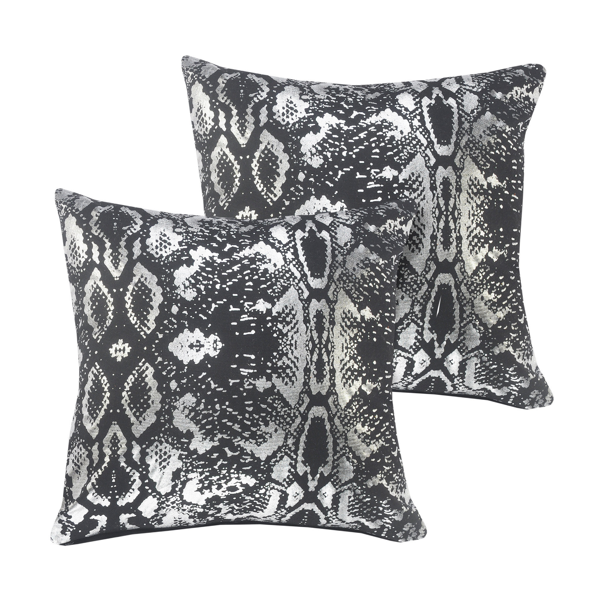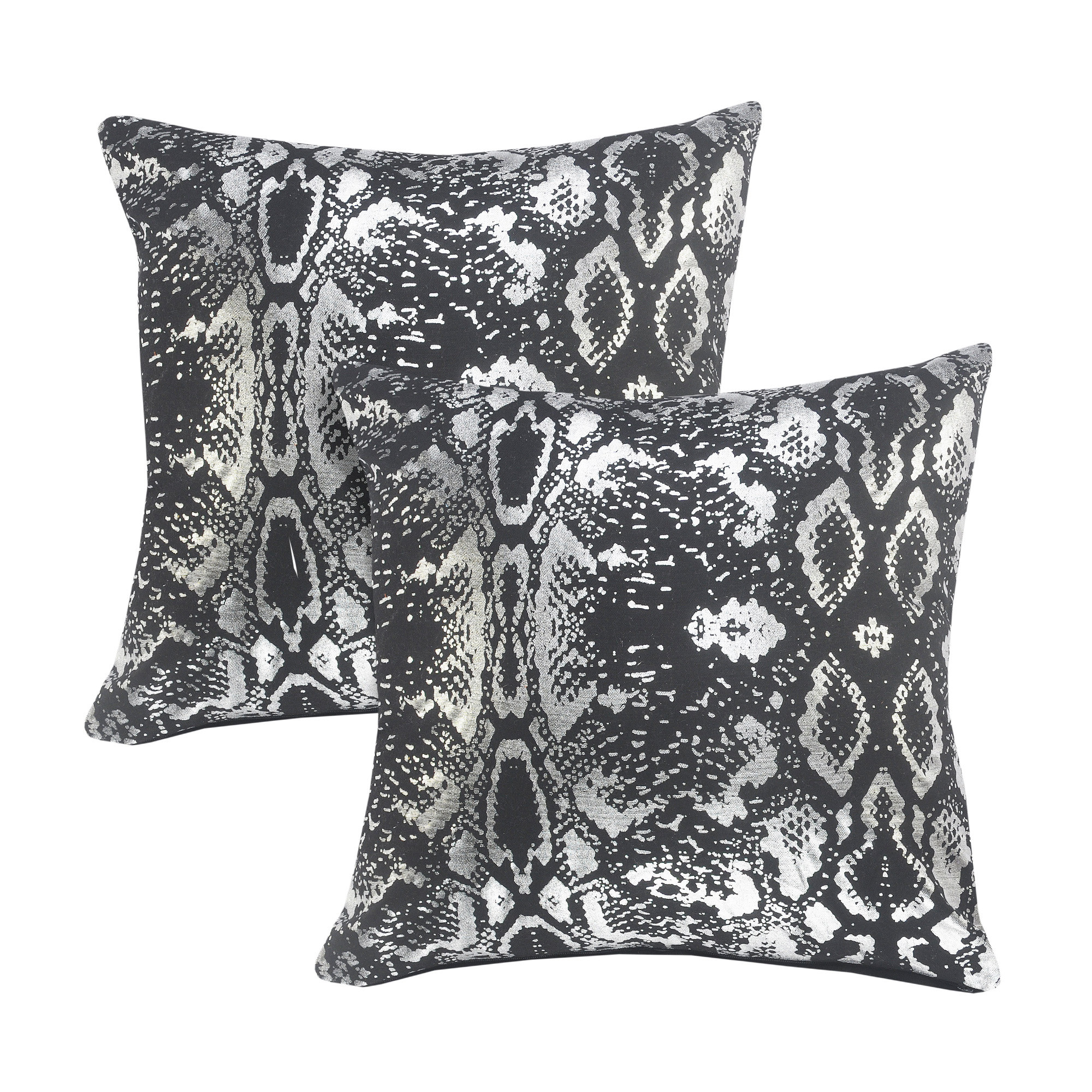 Add an air of fashion to your room and rejuvenate the space with this cute and fashionable set of two 20-inch black and silver beach striped cotton throw pillows. This black and silver colored decorative pillow set is made from high grade cotton that is durable and soft to the touch. Super soft and built to hold its shape, this polyester-filled pillow is a great option. Great to use on its own or mix with other decorations for the perfect look. A great decorative accessory to add color and dimension to your favorite chair, accent your sofa, or to use as part of your bed ensemble. 20.00-inch h x 20.00-inch w x 0.50-inch d.