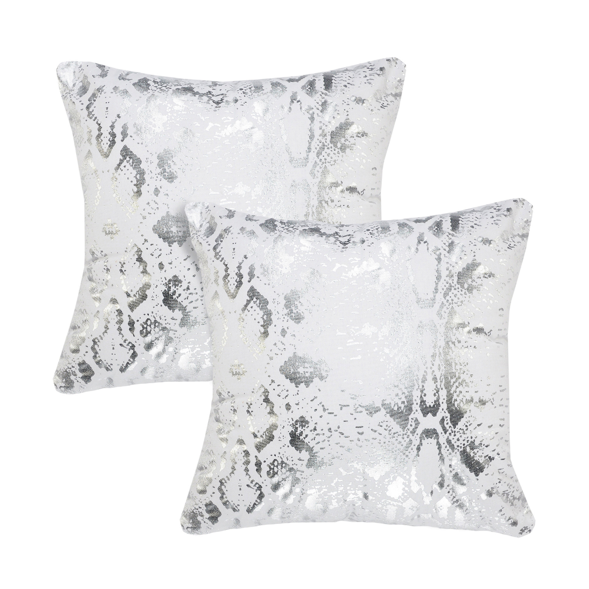 Add an air of fashion to your room and rejuvenate the space with this cute and fashionable set of two 20-inch white and silver beach striped cotton throw pillows. These white and silver hued pillows represent quality construction, expertly made from durable cotton that is not only long lasting but super soft to the touch as well. This soft polyester filled pillow not only is decorative but made to be comfy and cozy all day long. Great to use on its own or mix with other decorations for the perfect look. A great decorative accessory to add color and dimension to your favorite chair, accent your sofa, or to use as part of your bed ensemble. 20.00-inch h x 20.00-inch w x 0.50-inch d.