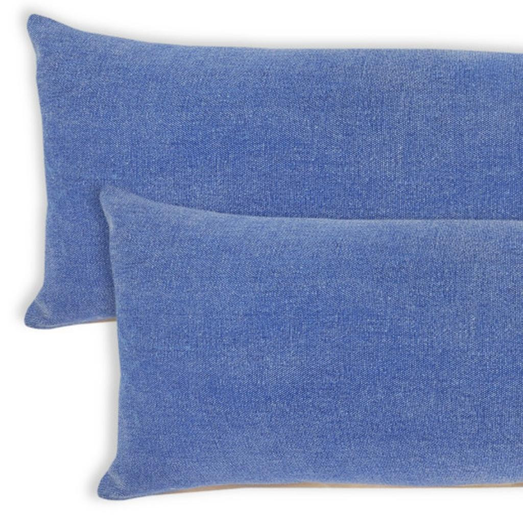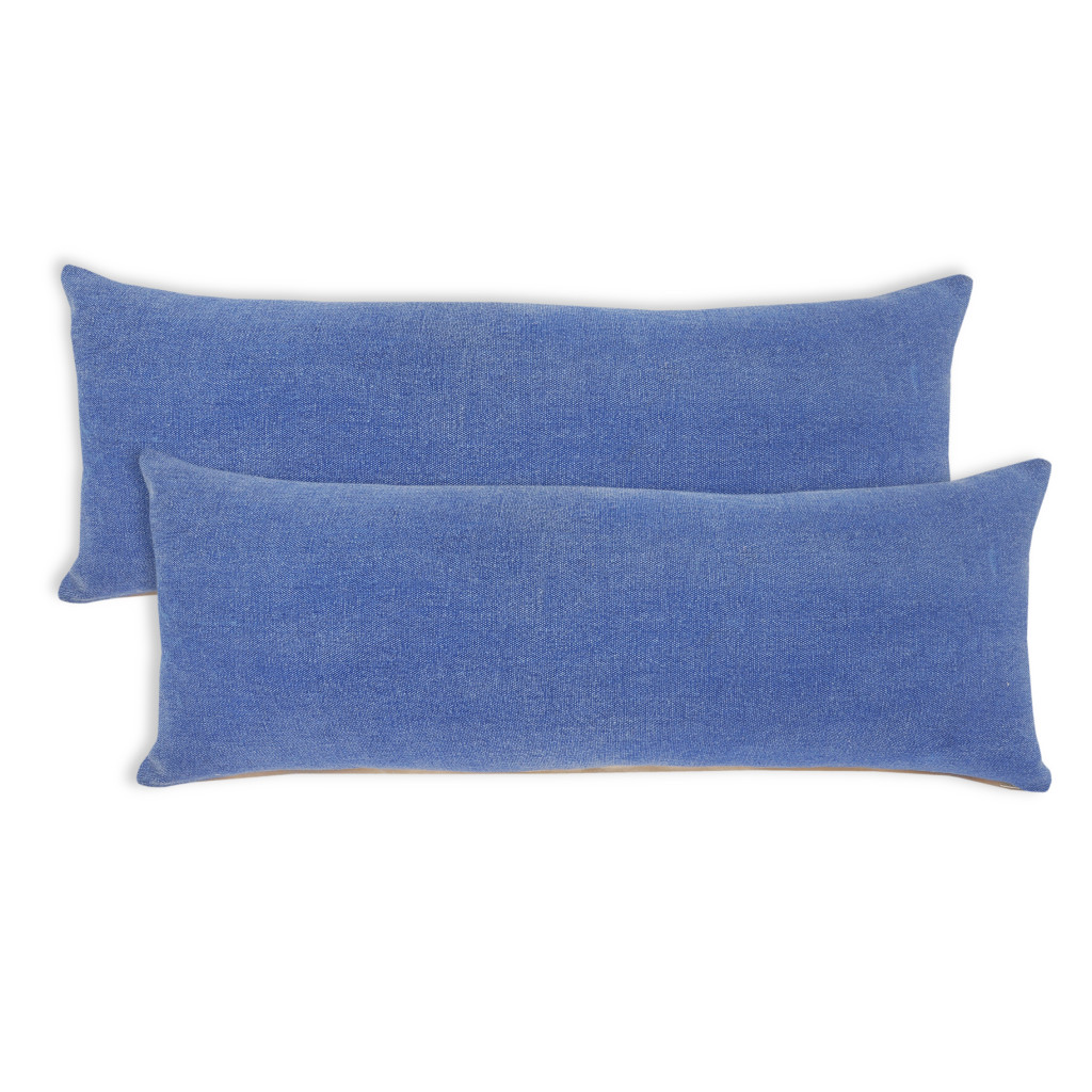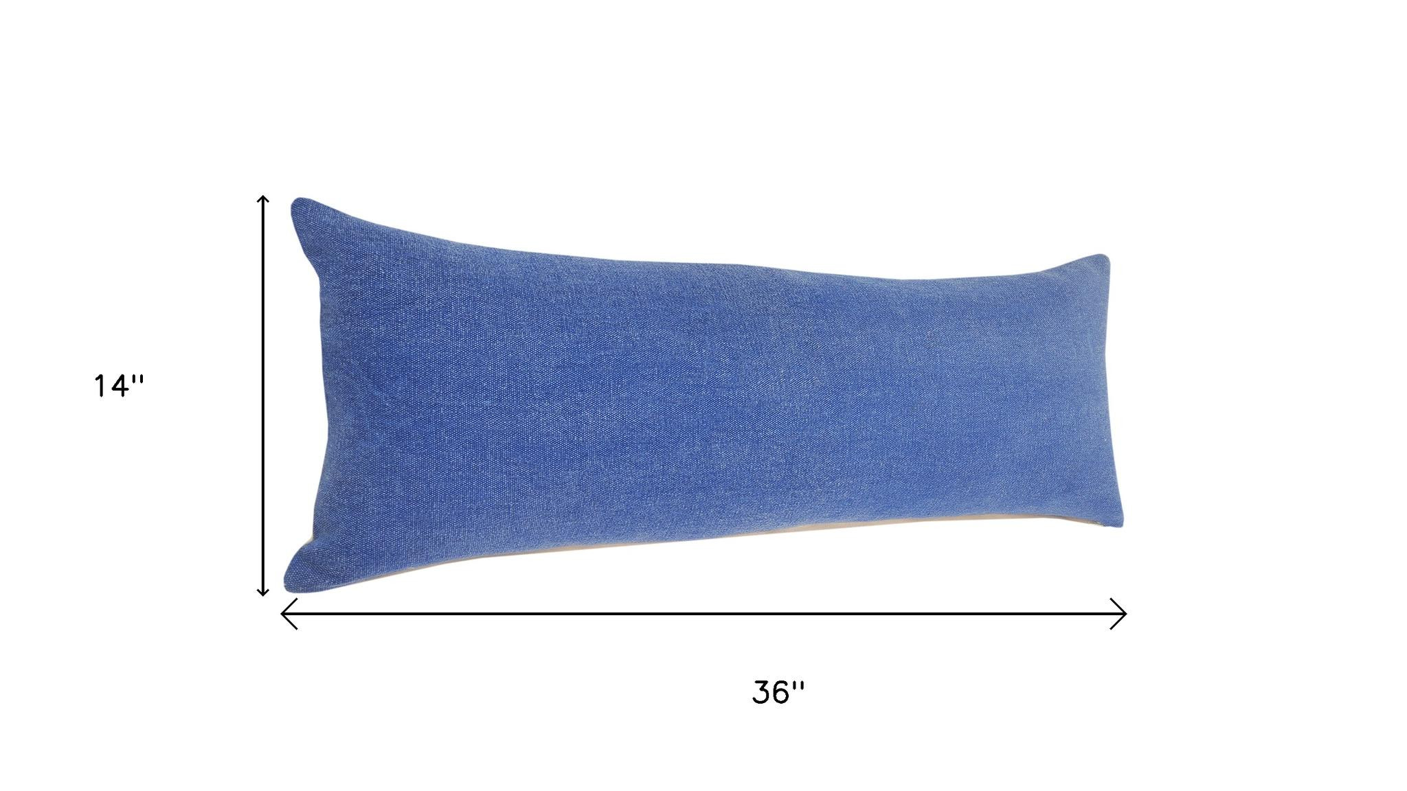 Bring a bit of fashion and zip to your space with this eye-catching and comfy set of two 14-inch x 36-inch blue lumbar cotton throw pillows. Ultra durable blue cotton has been used to make this decorative pillow set a beautiful look that will stand the test of time. This soft polyester filled pillow not only is decorative but made to be comfy and cozy all day long. Great to use on its own or mix with other decorations for the perfect look. Decorative throw pillows not only add color and dimension to your space but can be comfy and supportive when you are lounging and cuddling as well. 14.00-inch h x 36.00-inch w x 0.50-inch d.
