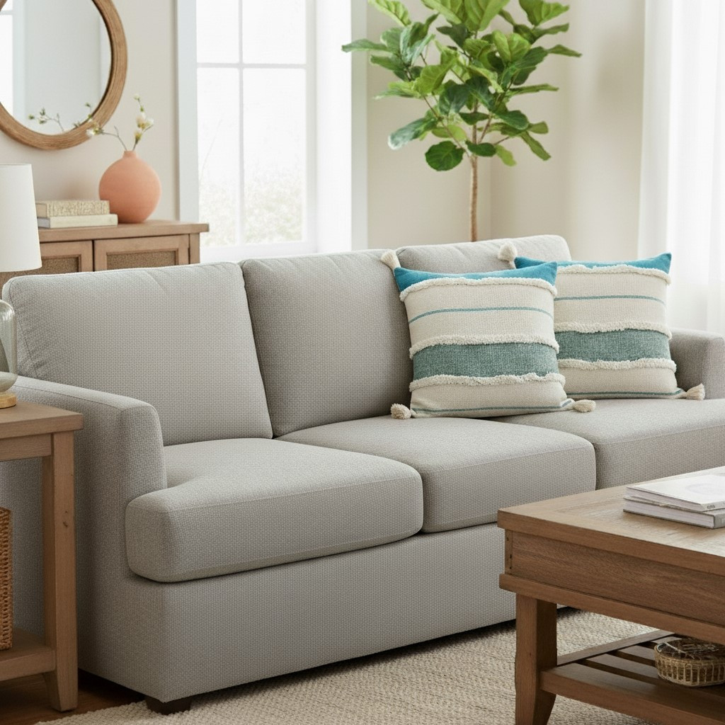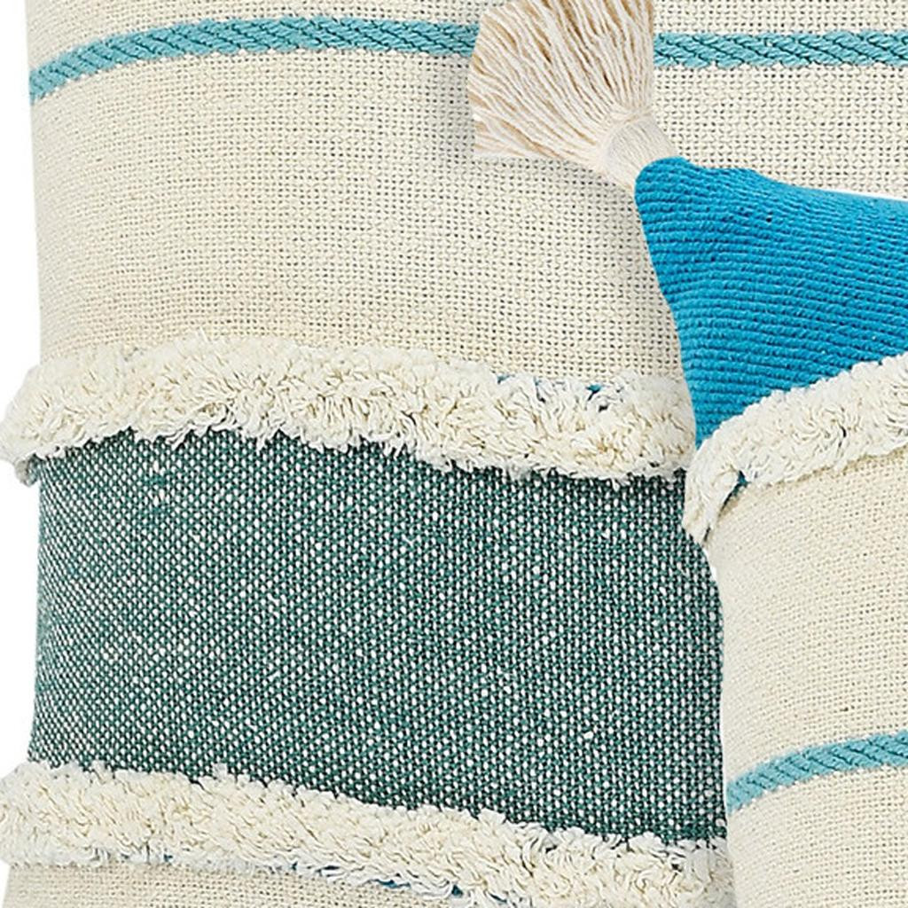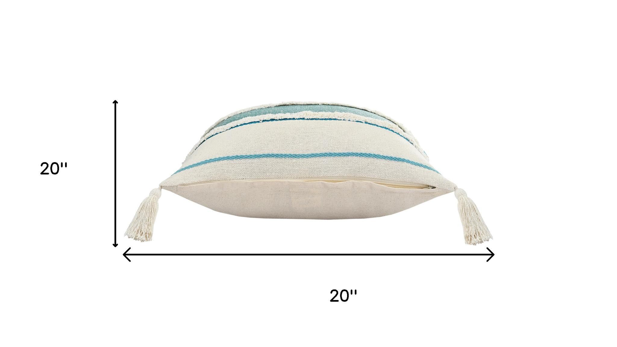 The set of two 20-inch white and blue beach striped cotton throw pillows is the perfect decorative accessory for your home. These white and blue hued pillows represent quality construction, expertly made from durable cotton that is not only long lasting but super soft to the touch as well. This soft polyester filled pillow not only is decorative but made to be comfy and cozy all day long. Decorative pillows are a great way to change up the look and feel of your space easily and quickly. A great decorative accessory to add color and dimension to your favorite chair, accent your sofa, or to use as part of your bed ensemble. 20.00-inch h x 20.00-inch w x 0.50-inch d.