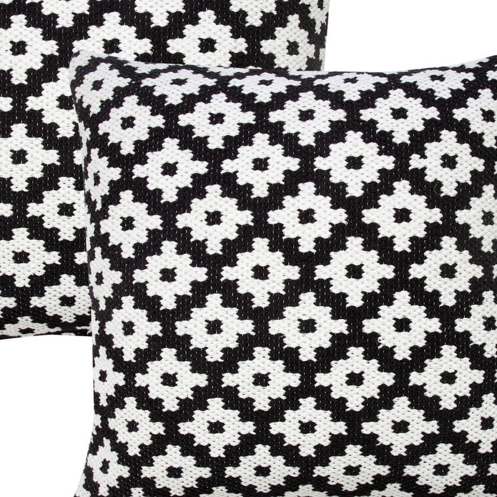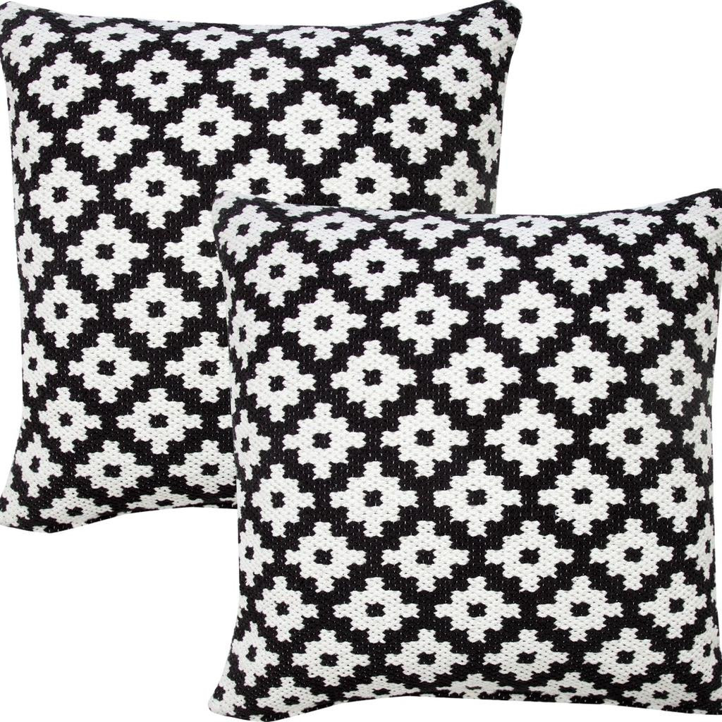 This set of two 20-inch black and white geometric cotton blend throw pillows will add a beautiful decorative accent to your decor. These great looking soft decorative pillows are expertly made of durable and long lasting cotton blend in a black and white coloration. Super soft and built to hold its shape, this polyester-filled pillow is a great option. Decorative pillows are a great way to change up the look and feel of your space easily and quickly. A great decorative accessory to add color and dimension to your favorite chair, accent your sofa, or to use as part of your bed ensemble. 20.00-inch h x 20.00-inch w x 4.00-inch d.