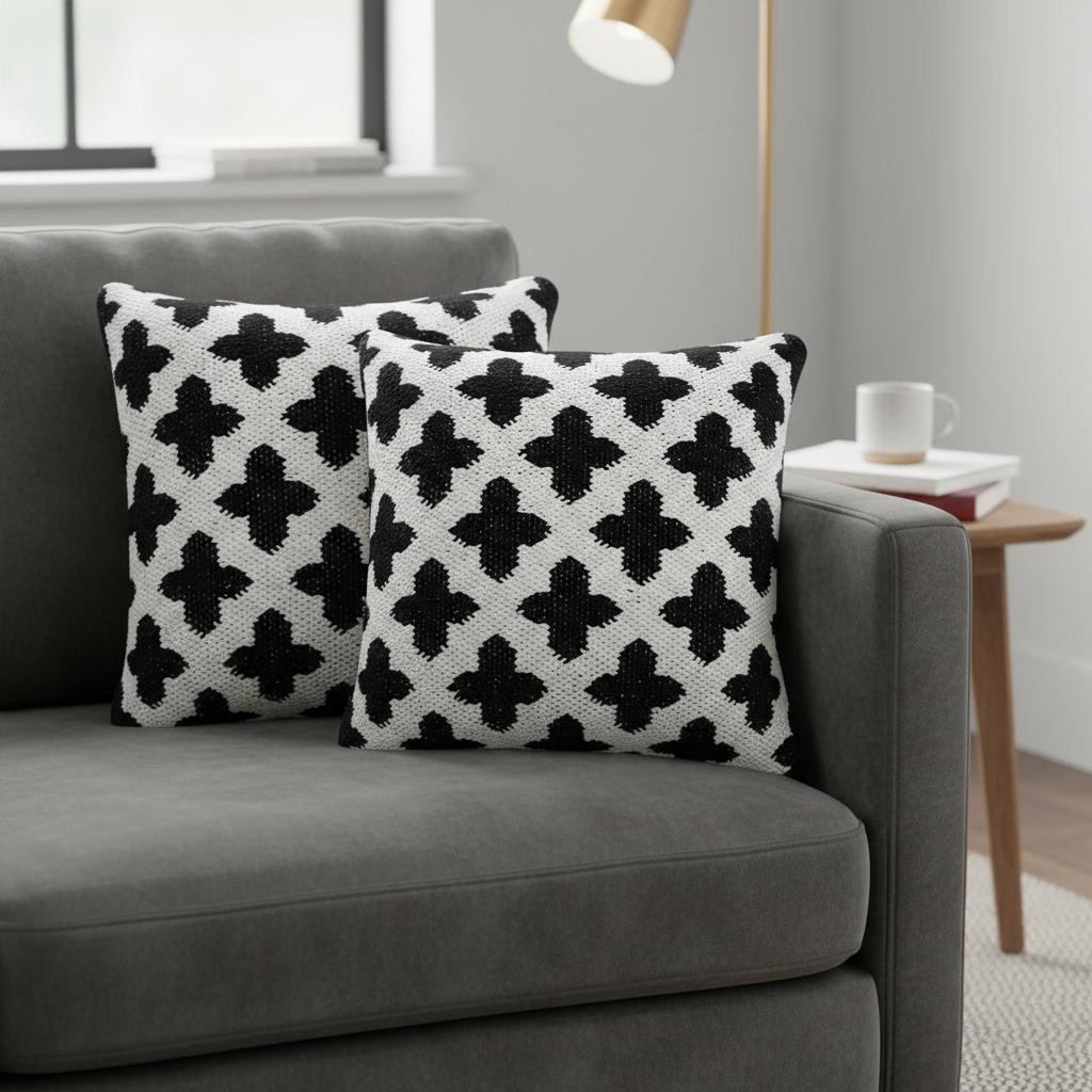 geometric cotton blend throw pillows, cotton blend throw pillows, blend throw pillows, 20" white black geometric cotton, black geometric cotton blend throw |
