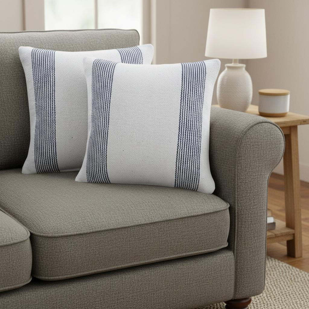 white striped cotton throw pillows, striped cotton throw pillows, cotton throw pillows, 20" blue white striped cotton, set 20" blue white striped |
