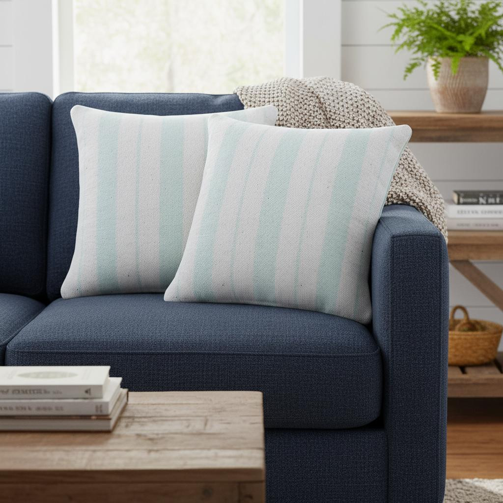white striped cotton throw pillows, striped cotton throw pillows, cotton throw pillows, 20" blue white striped cotton, set 20" blue white striped |