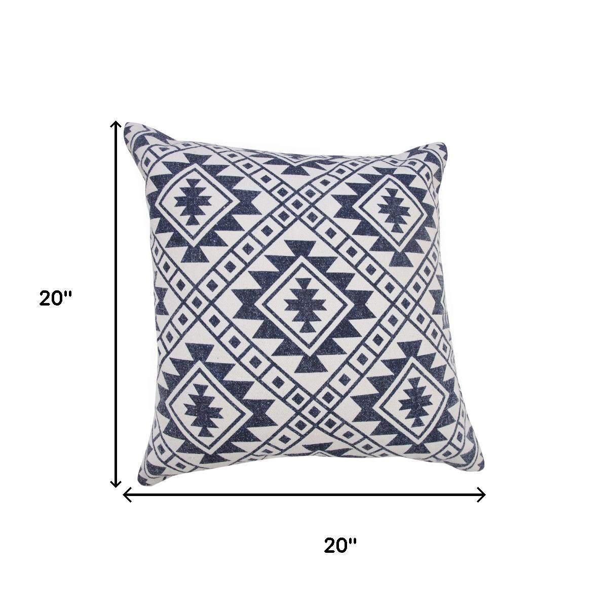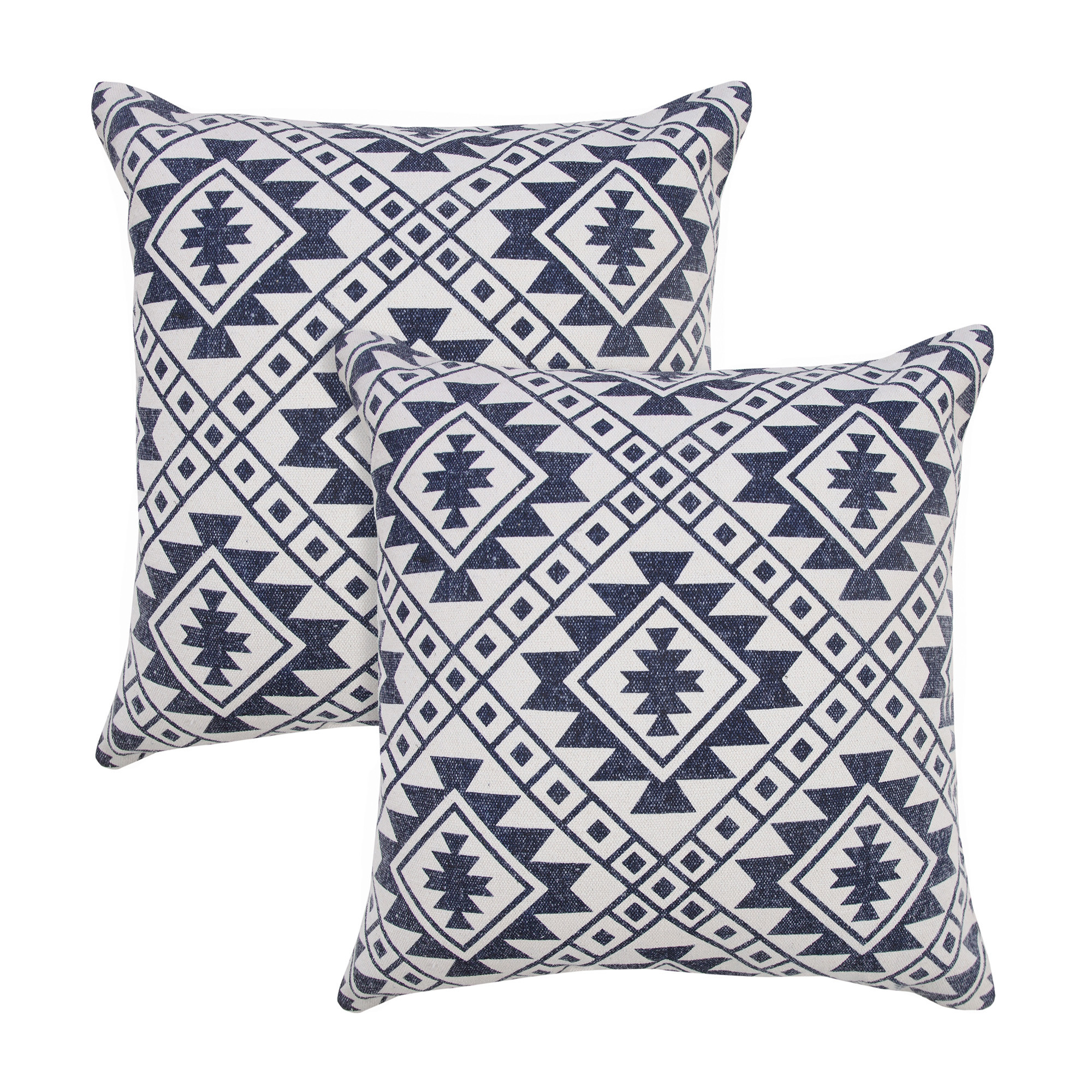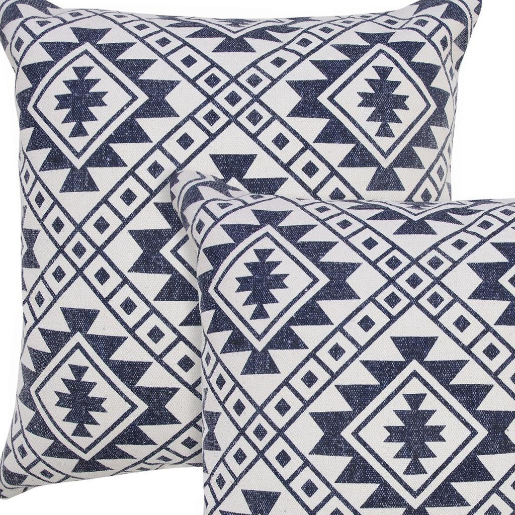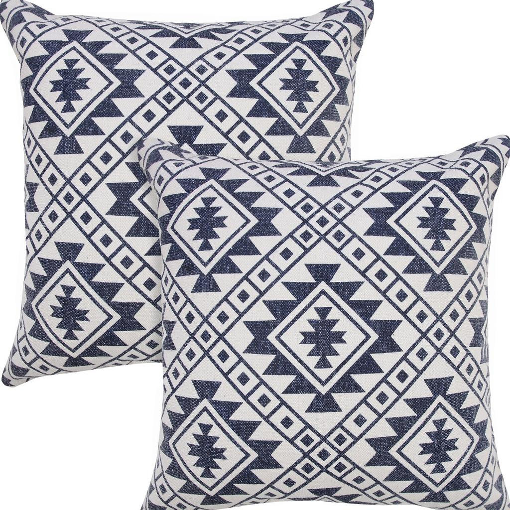 The set of two 20-inch blue and white geometric cotton throw pillows is the perfect decorative accessory for your home. The blue and white coloring of the extremely durable and long lasting cotton pillows will add dimension and texture to your space. Super soft and built to hold its shape, this polyester-filled pillow is a great option. For anyone that loves to decorate or accent their space with color and texture. Decorative throw pillows not only add color and dimension to your space but can be comfy and supportive when you are lounging and cuddling as well. 20.00-inch h x 20.00-inch w x 0.50-inch d.