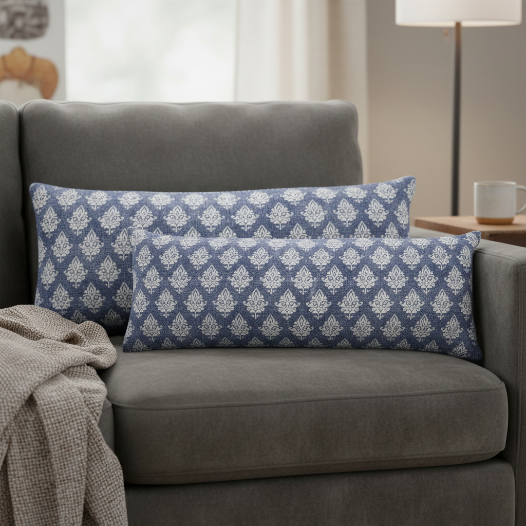 lumbar damask cotton throw pillows, cotton throw pillows, damask cotton throw pillows, blue white lumbar damask cotton, set 14" X 36" blue white |