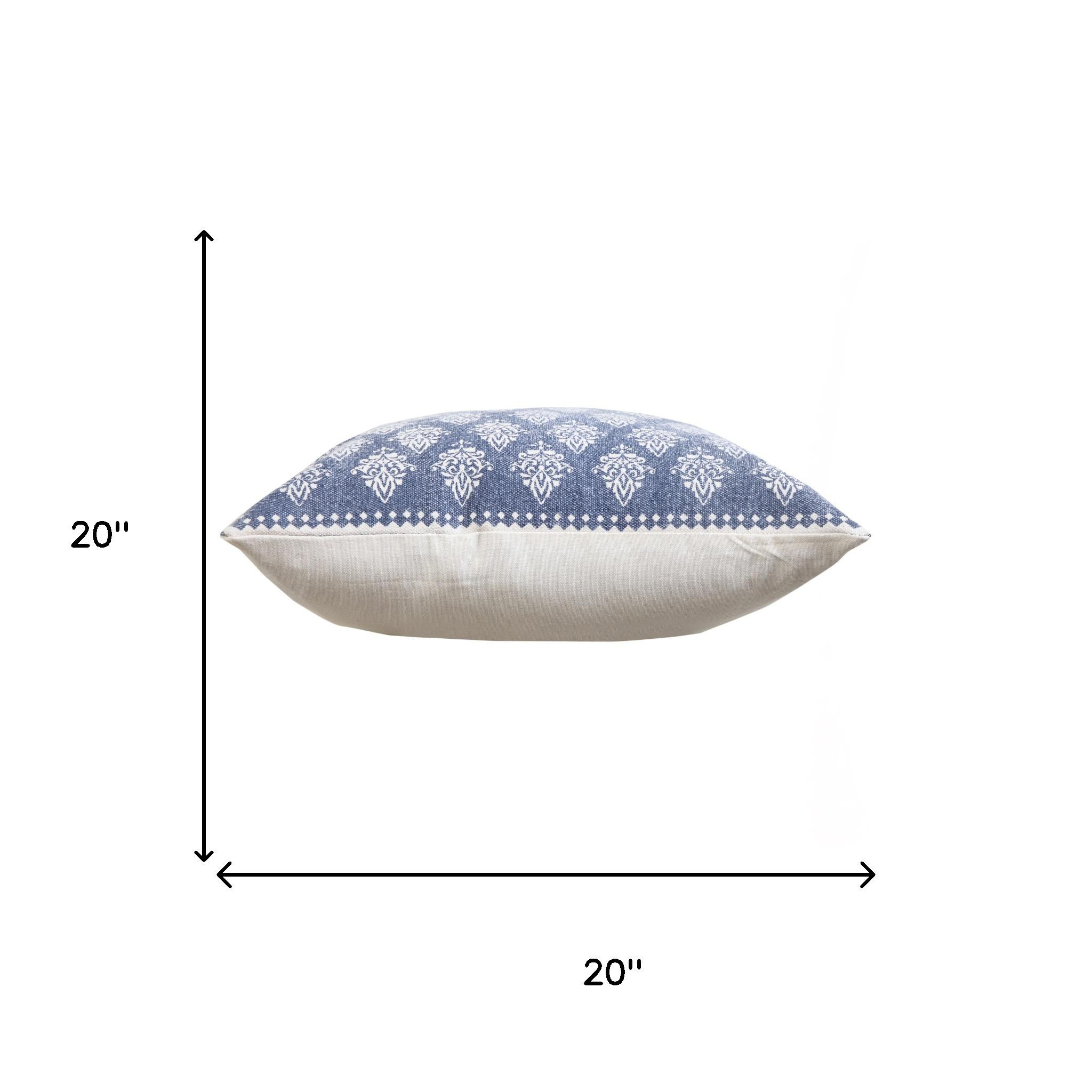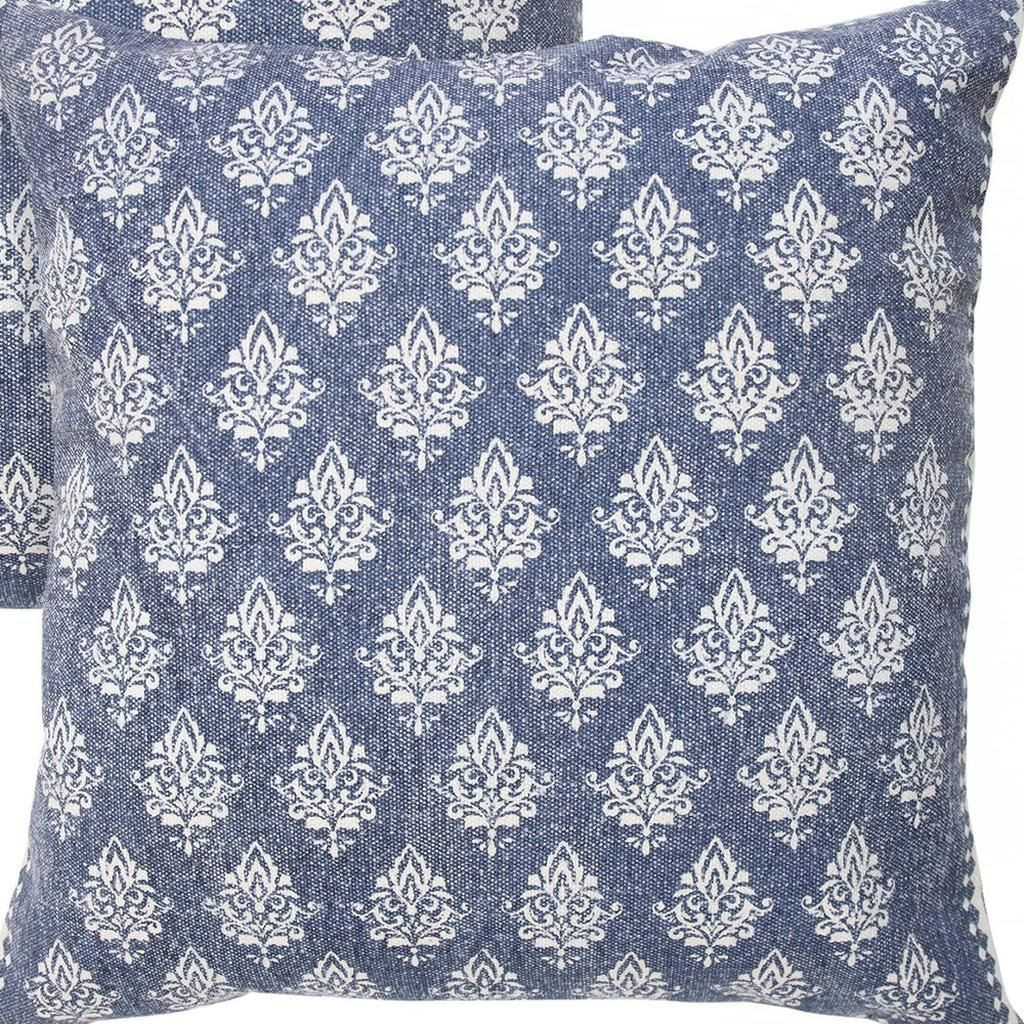 Add an air of fashion to your room and rejuvenate the space with this cute and fashionable set of two 20-inch blue and white damask cotton throw pillows. This blue and white colored decorative pillow set is made from high grade cotton that is durable and soft to the touch. This soft polyester filled pillow not only is decorative but made to be comfy and cozy all day long. Great to use on its own or mix with other decorations for the perfect look. Decorative throw pillows not only add color and dimension to your space but can be comfy and supportive when you are lounging and cuddling as well. 20.00-inch h x 20.00-inch w x 0.50-inch d.