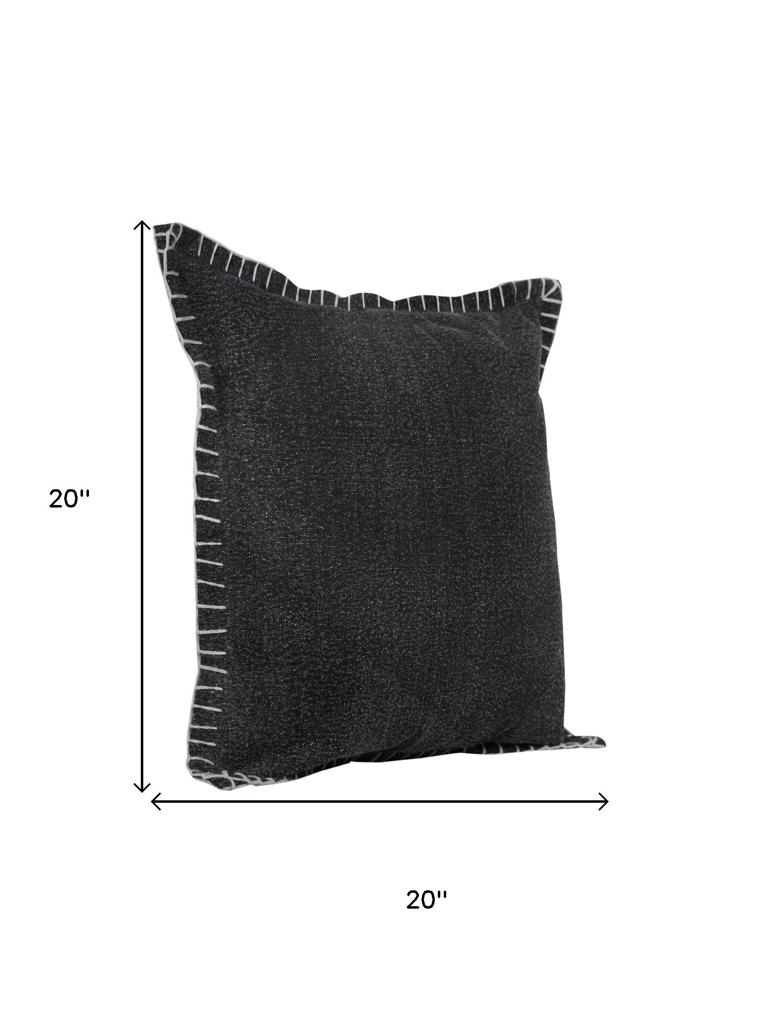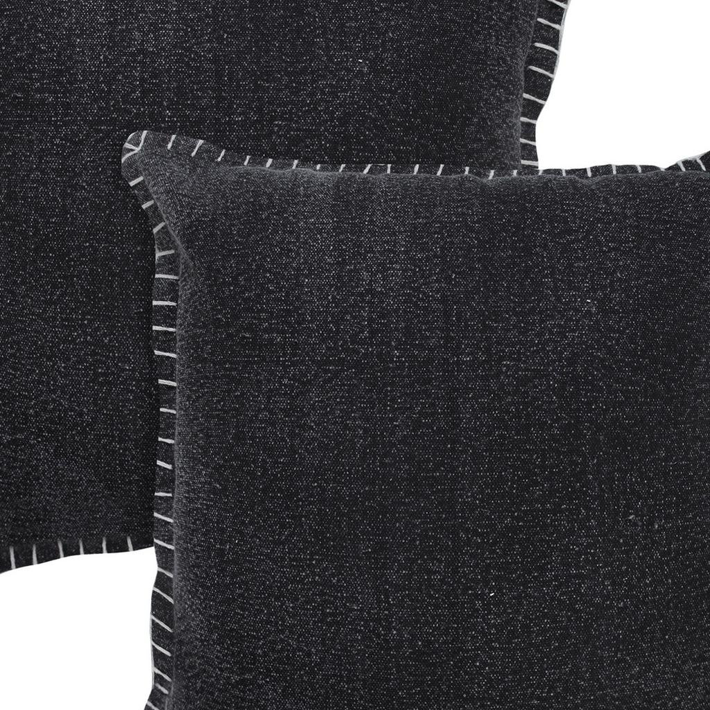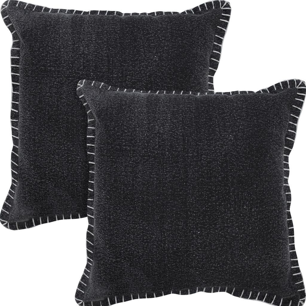 Bring a bit of fashion and zip to your space with this eye-catching and comfy set of two 20-inch black cotton throw pillows. Ultra durable black cotton has been used to make this decorative pillow set a beautiful look that will stand the test of time. Super soft and built to hold its shape, this polyester-filled pillow is a great option. For anyone that loves to decorate or accent their space with color and texture. Decorative throw pillows not only add color and dimension to your space but can be comfy and supportive when you are lounging and cuddling as well. 20.00-inch h x 20.00-inch w x 0.50-inch d.