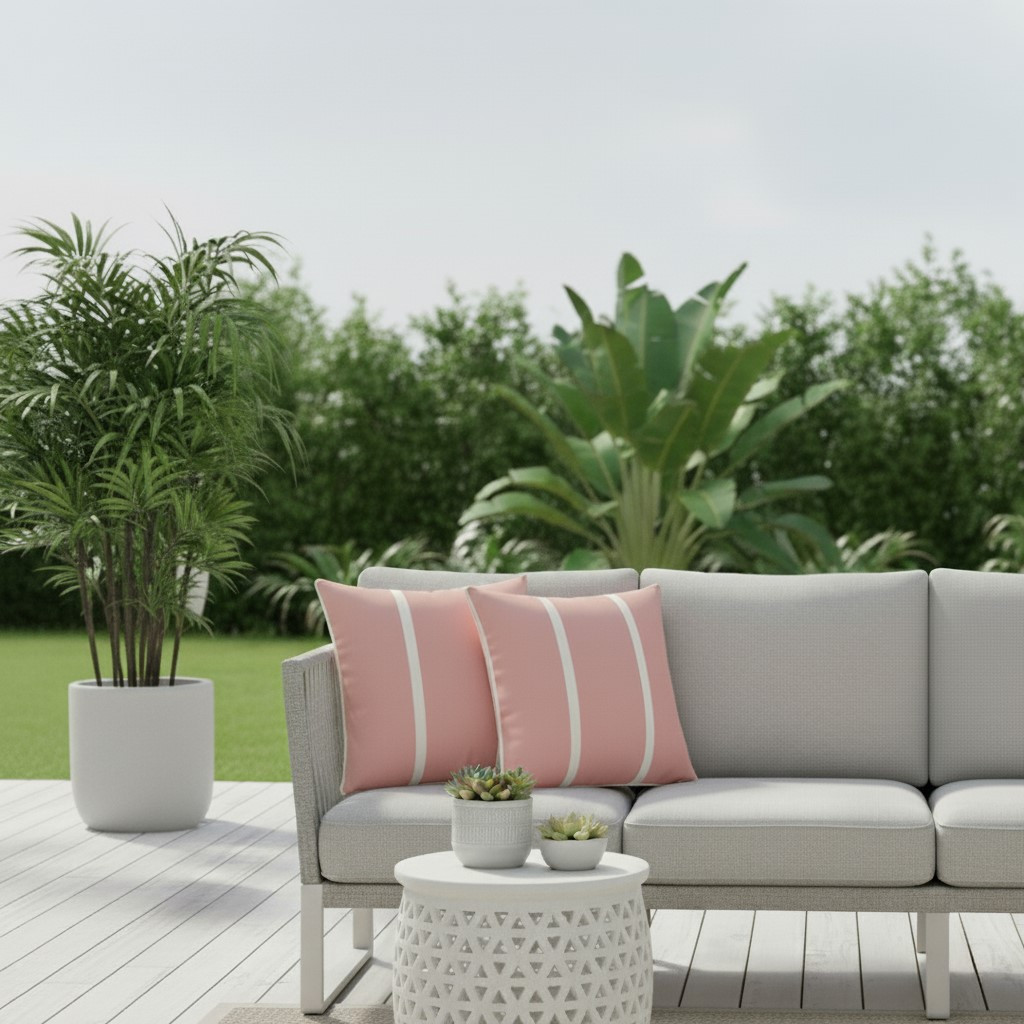 Unique and decorative, this comfortable set of two 20-inch pink and white striped recycled poly linen throw pillows will leave a lasting impression. These pink and white hued pillows represent quality construction, expertly made from durable recycled poly linen that is not only long lasting but super soft to the touch as well. This soft polyester filled pillow not only is decorative but made to be comfy and cozy all day long. Decorative pillows are a great way to change up the look and feel of your space easily and quickly. A great decorative accessory to add color and dimension to your favorite chair, accent your sofa, or to use as part of your bed ensemble. 20.00-inch h x 20.00-inch w x 4.00-inch d.
