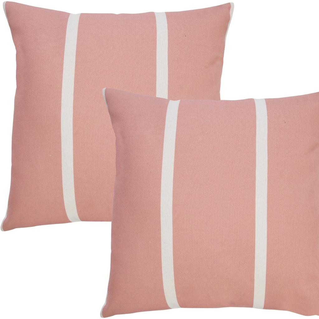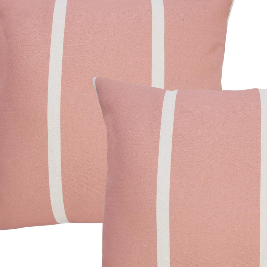 Add an air of fashion to your room and rejuvenate the space with this cute and fashionable set of two 20-inch pink and off white striped recycled poly linen throw pillows. Ultra durable pink and off white recycled poly linen has been used to make this decorative pillow set a beautiful look that will stand the test of time. This soft polyfill filled pillow not only is decorative but made to be comfy and cozy all day long. Emblazoned with the text these pillows add some visual interest and decor to your space. Decorative pillows are a great way to change up the look and feel of your space easily and quickly. Decorative throw pillows not only add color and dimension to your space but can be comfy and supportive when you are lounging and cuddling as well. 20.00-inch h x 20.00-inch w x 4.00-inch d.