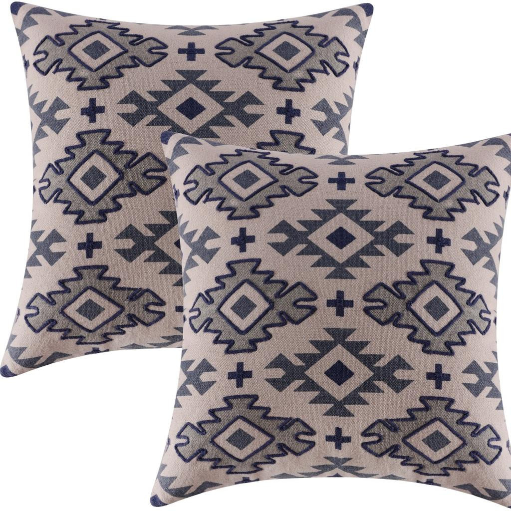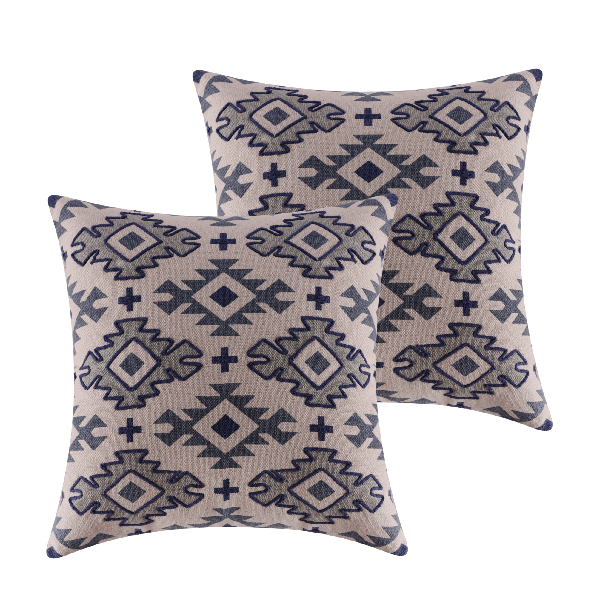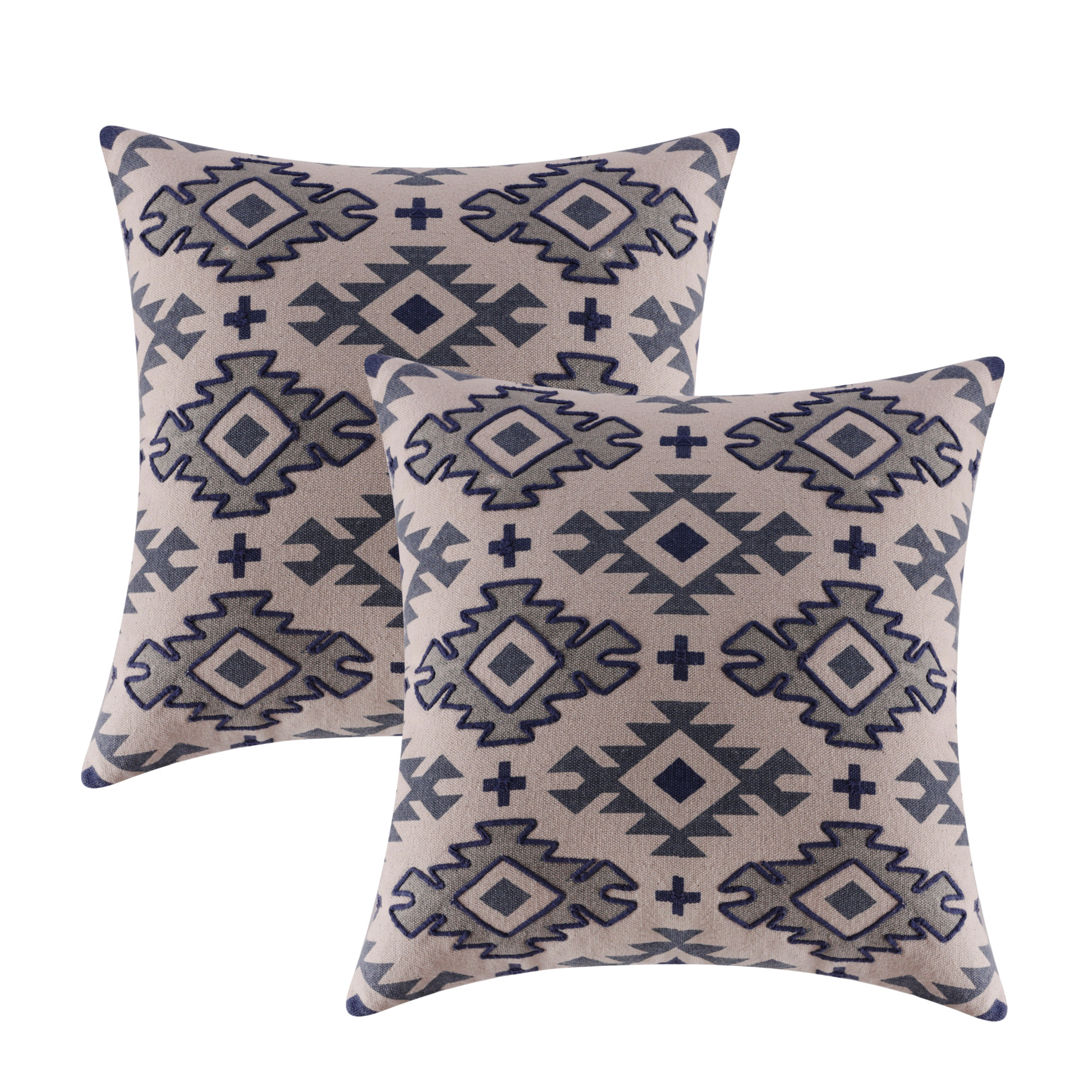 Unique and decorative, this comfortable set of two 20-inch blue and gray geometric cotton throw pillows will leave a lasting impression. The blue and gray coloring of the extremely durable and long lasting cotton pillows will add dimension and texture to your space. This soft polyester filled pillow not only is decorative but made to be comfy and cozy all day long. Decorative pillows are a great way to change up the look and feel of your space easily and quickly. Decorative throw pillows not only add color and dimension to your space but can be comfy and supportive when you are lounging and cuddling as well. 20.00-inch h x 20.00-inch w x 4.00-inch d.