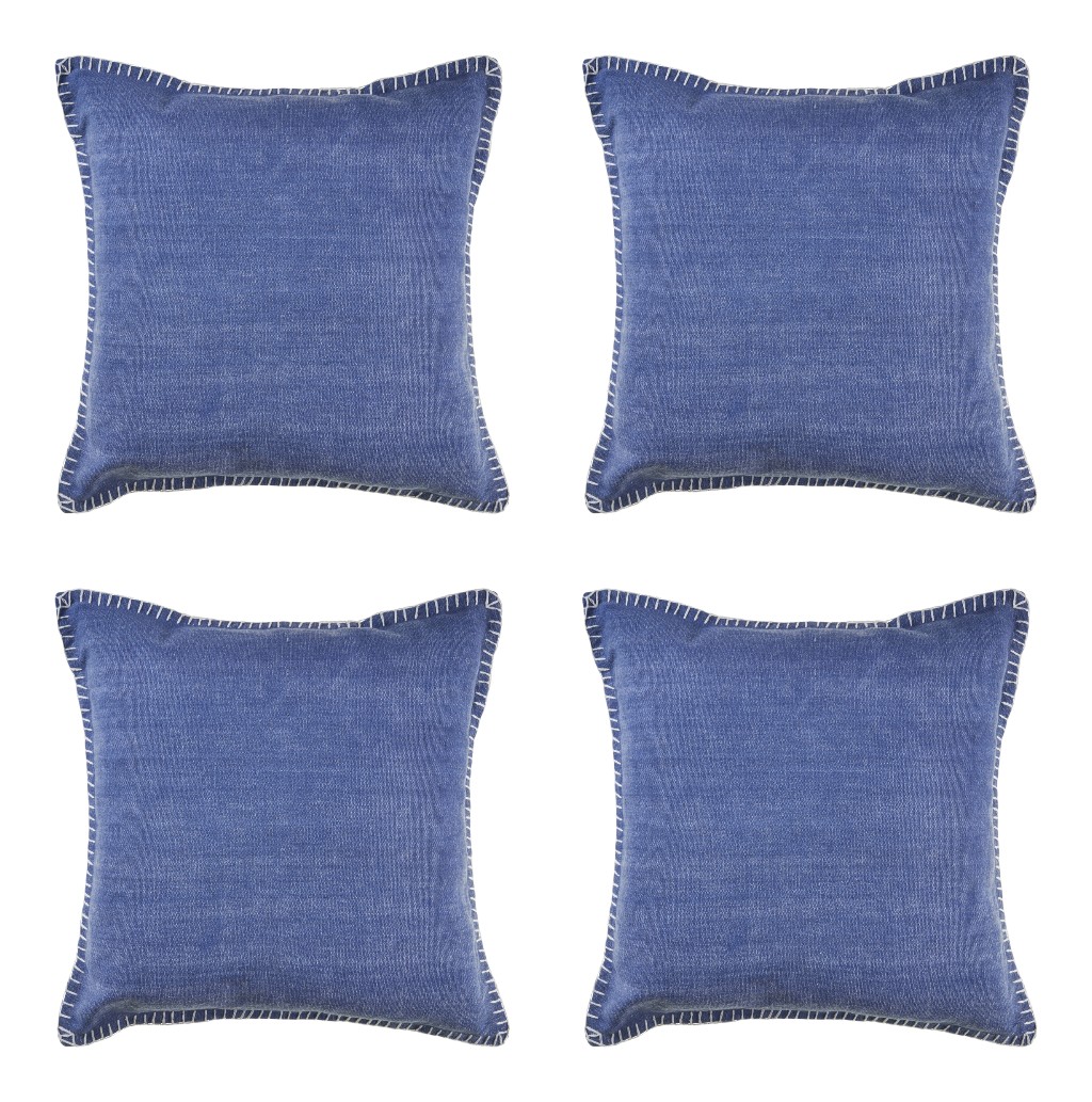 Bring a bit of fashion and zip to your space with this eye-catching and comfy set of four 24-inch blue cotton throw pillows. The blue coloring of the extremely durable and long lasting cotton pillows will add dimension and texture to your space. This soft polyfill filled pillow not only is decorative but made to be comfy and cozy all day long. Emblazoned with the text these pillows add some visual interest and decor to your space. Great to use on its own or mix with other decorations for the perfect look. Decorative throw pillows not only add color and dimension to your space but can be comfy and supportive when you are lounging and cuddling as well. 24.00-inch h x 24.00-inch w x 4.00-inch d.