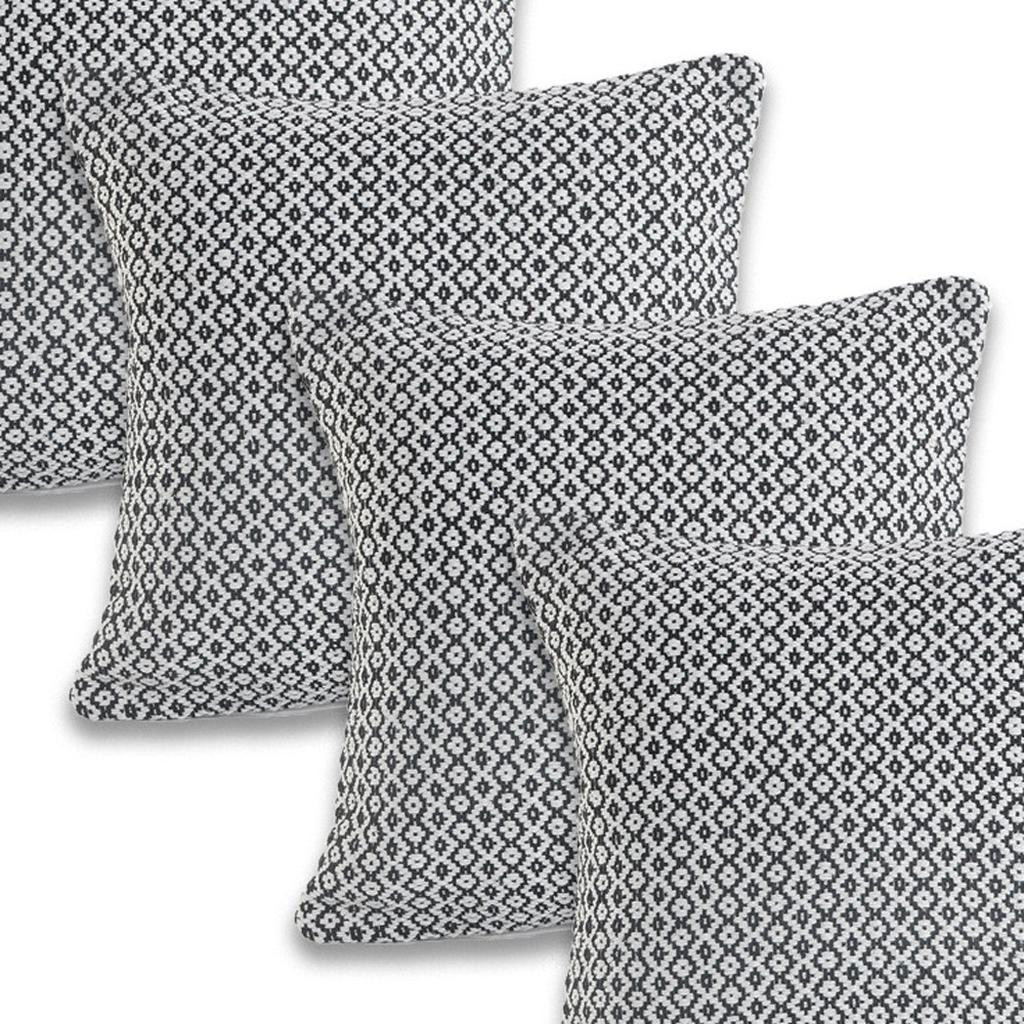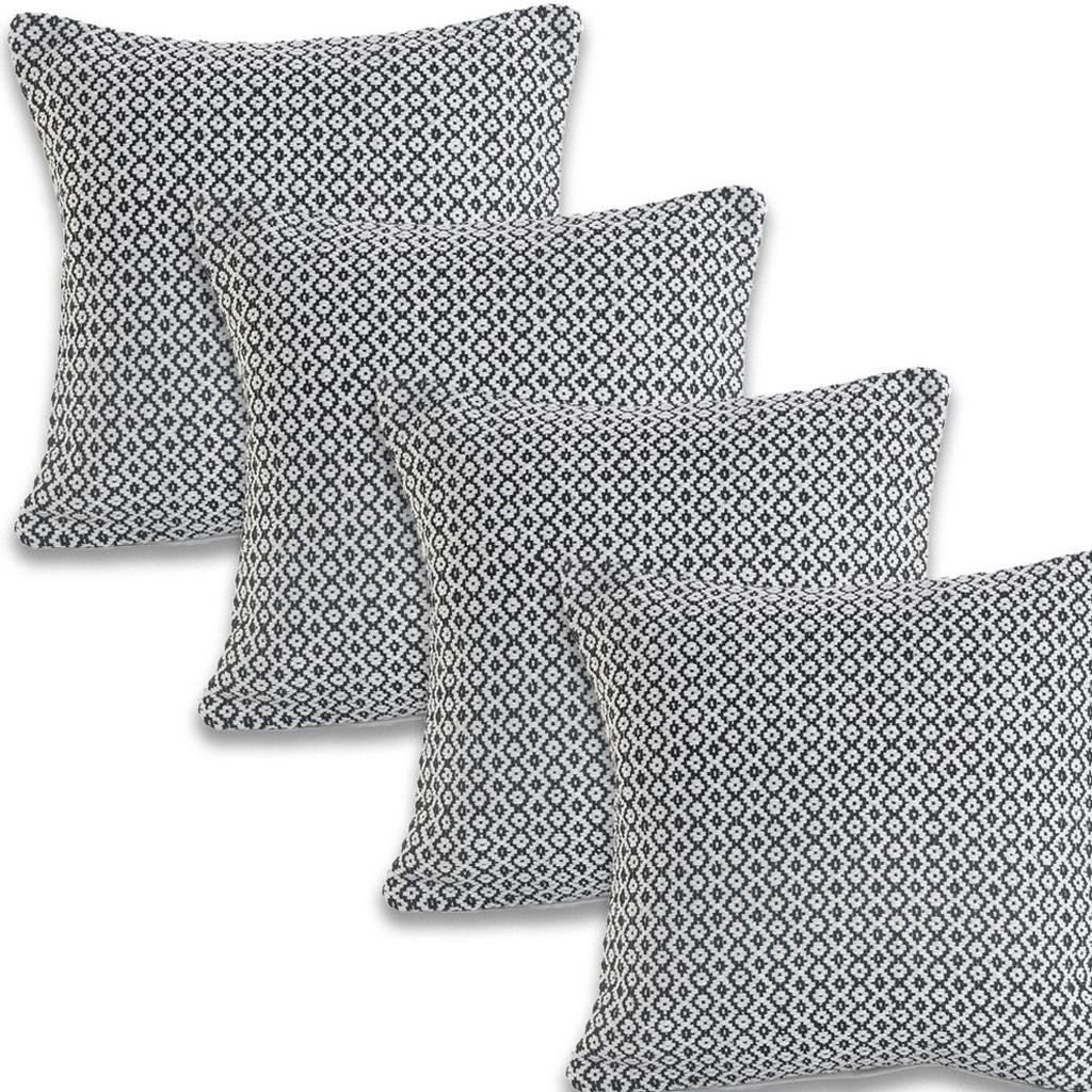 Unique and decorative, this comfortable set of four 18-inch black and white geometric cotton throw pillows will leave a lasting impression. These great looking soft decorative pillows are expertly made of durable and long lasting cotton in a black and white coloration. This soft polyester filled pillow not only is decorative but made to be comfy and cozy all day long. For anyone that loves to decorate or accent their space with color and texture. Decorative throw pillows not only add color and dimension to your space but can be comfy and supportive when you are lounging and cuddling as well. 18.00-inch h x 18.00-inch w x 7.00-inch d.