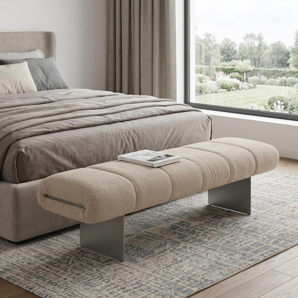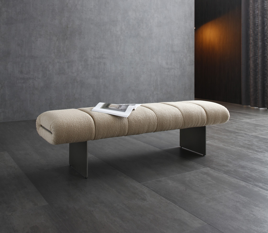 nickel boucle steel upholstered bench, boucle steel upholstered bench, steel upholstered bench, beige nickel boucle steel upholstered, boucle steel upholstered |