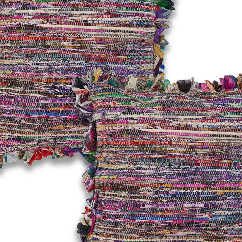 This set of two 18-inch pink and blue floor striped rayon throw pillow covers will add a beautiful decorative accent to your decor. These red and pink hued pillow covers represent quality construction, expertly made from durable rayon that is not only long lasting but super soft to the touch as well. Pillow covers are a good idea for anyone that loves to decorate or accent their space with color and texture. Combine with your own fill or insert to add decoration and dimension to your favorite chair, accent your sofa, or to use as part of your bed ensemble. 18.00-inch h x 18.00-inch w x 0.25-inch d.