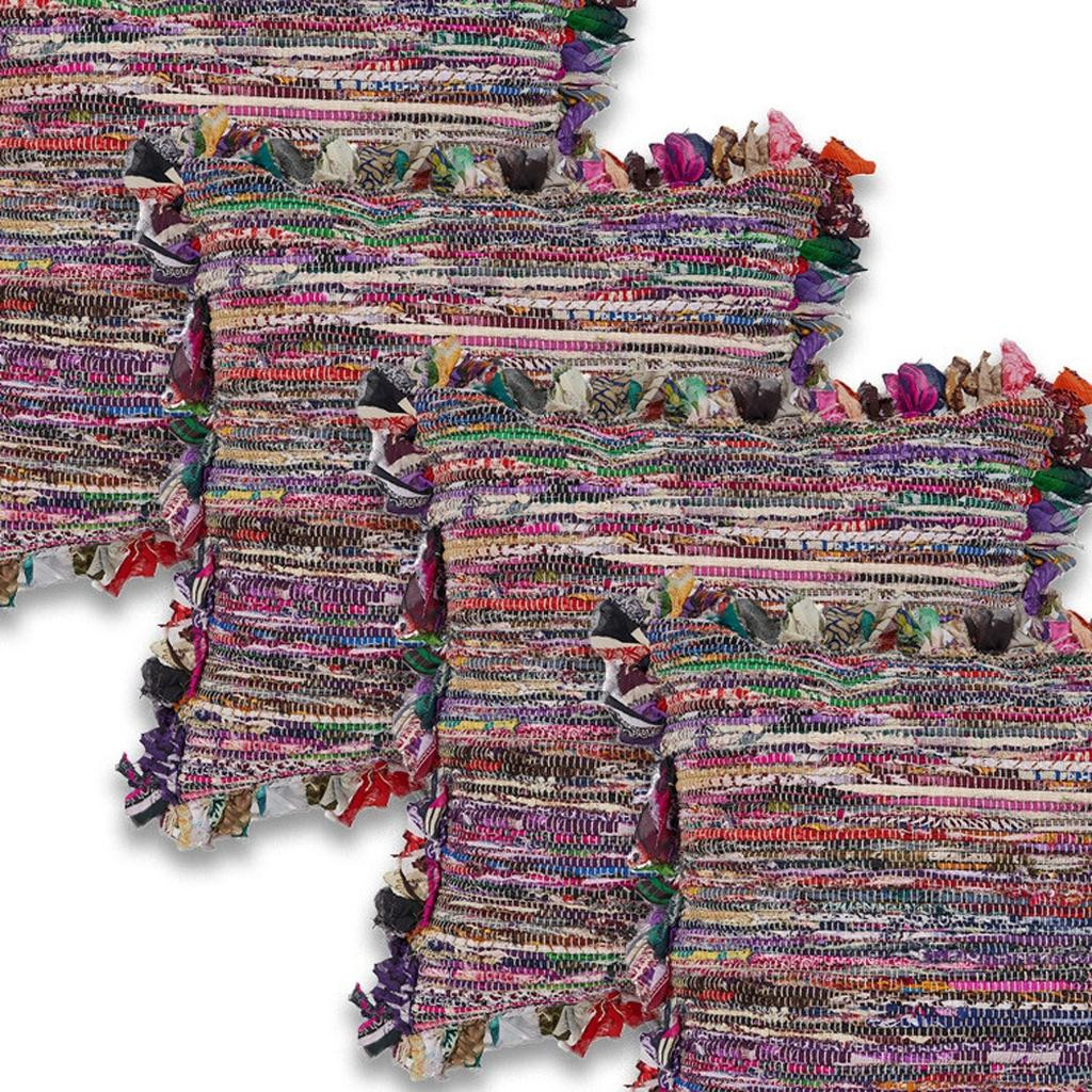 Bring a bit of fashion and zip to your space with this eye-catching and comfy set of four 18-inch pink and blue floor striped rayon throw pillow covers. Ultra durable red and pink rayon has been used to make this decorative pillow cover set a beautiful look that will stand the test of time. Pillow covers are a good idea for anyone that loves to decorate or accent their space with color and texture. Combine with your own fill or insert to add decoration and dimension to your favorite chair, accent your sofa, or to use as part of your bed ensemble. 18.00-inch h x 18.00-inch w x 0.25-inch d.