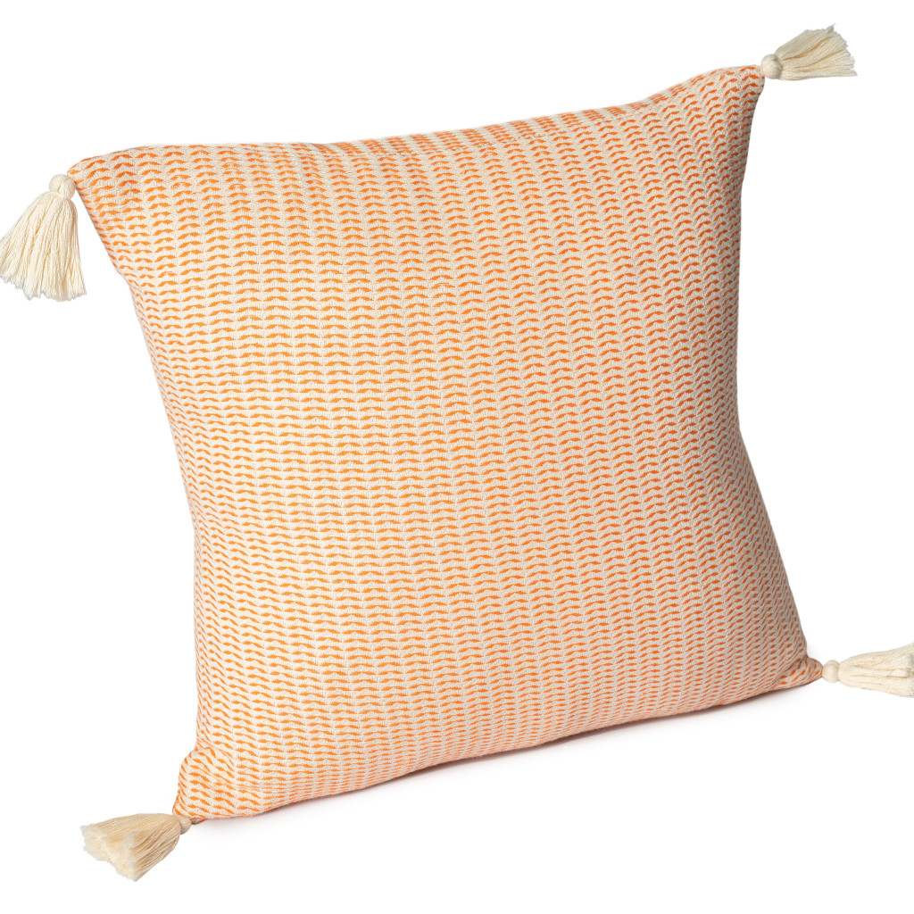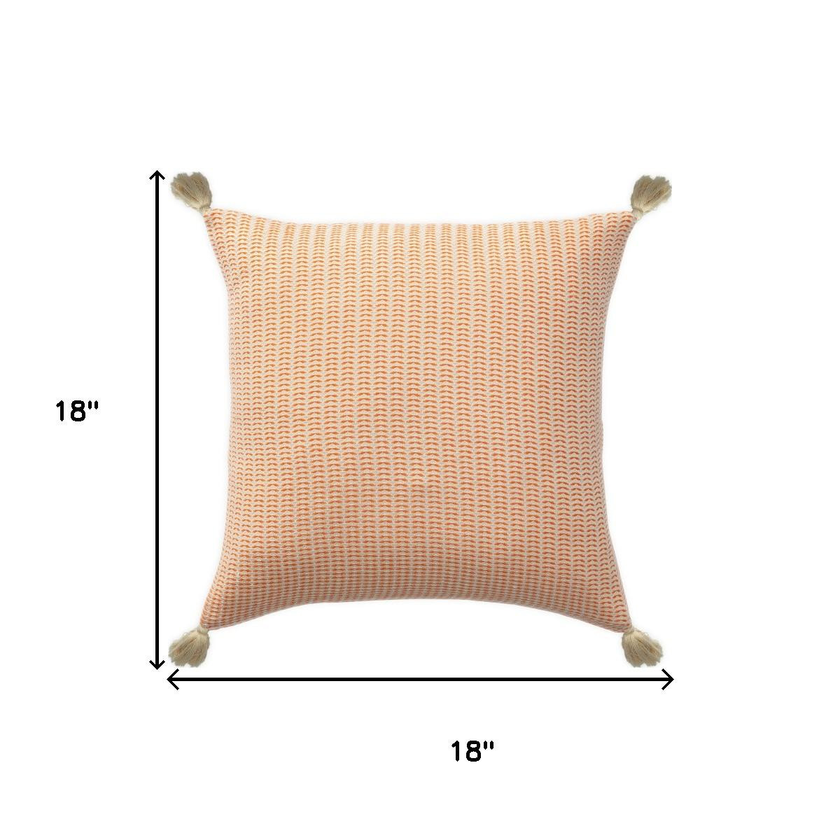 This 18-inch off white and orange striped cotton throw pillow cover will add a beautiful decorative accent to your decor. Durable off white and orange cotton has been used to give this pillow cover a beautiful look that will stand the test of time. Pillow covers are a good idea for anyone that loves to decorate or accent their space with color and texture. Combine with your own fill or insert to add decoration and dimension to your favorite chair, accent your sofa, or to use as part of your bed ensemble. 18.00-inch h x 18.00-inch w x 0.25-inch d.