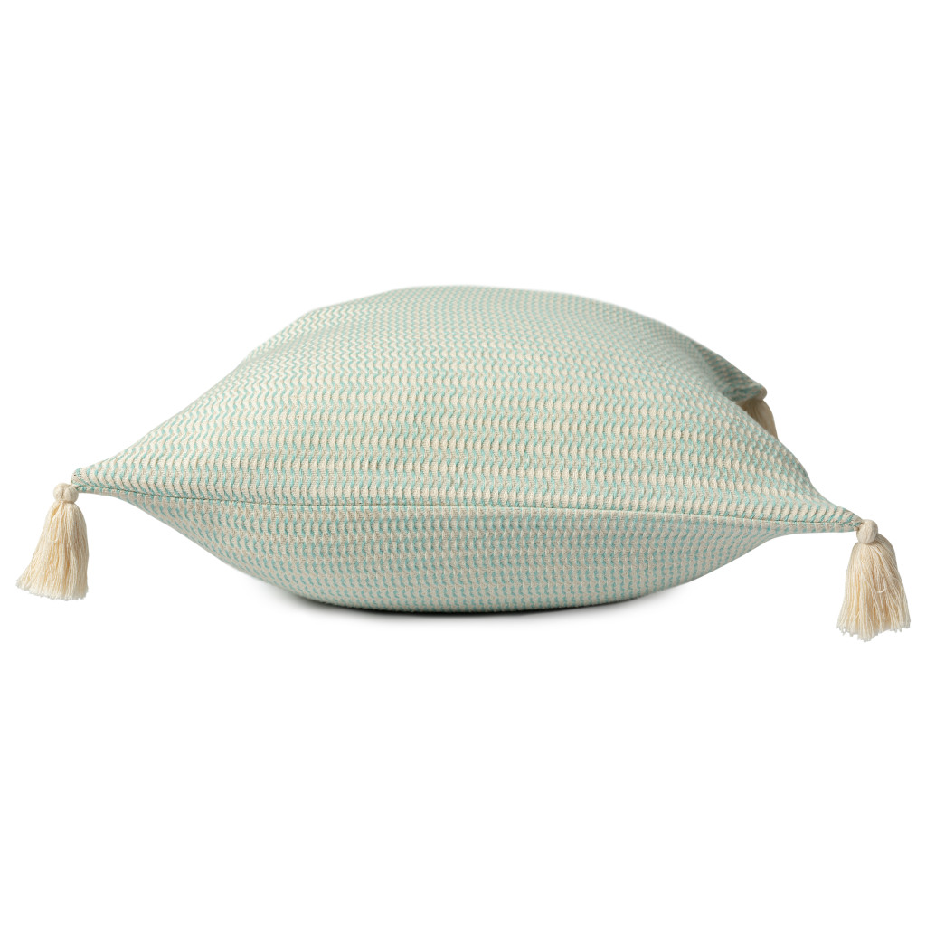The 18-inch light blue and beige striped cotton throw pillow cover is the perfect decorative accessory for your home. Durable light blue and beige cotton has been used to give this pillow cover a beautiful look that will stand the test of time. Pillow covers are a good idea for anyone that loves to decorate or accent their space with color and texture. Combine with your own fill or insert to add decoration and dimension to your favorite chair, accent your sofa, or to use as part of your bed ensemble. 18.00-inch h x 18.00-inch w x 0.25-inch d.