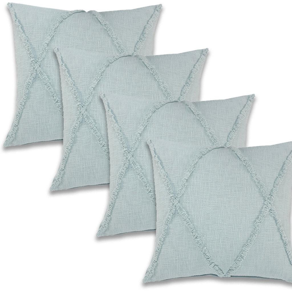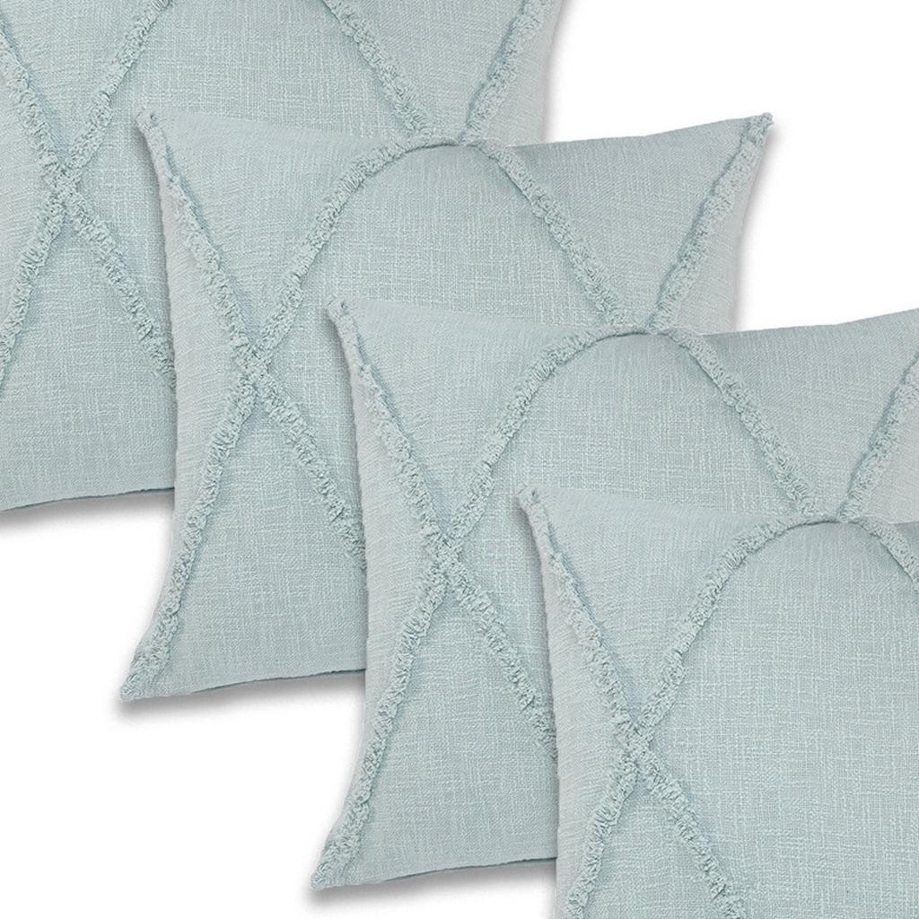 Bring a bit of fashion and zip to your space with this eye-catching and comfy set of four 18-inch blue and green lumbar diamond cotton throw pillow covers. These blue and green hued pillow covers represent quality construction, expertly made from durable cotton that is not only long lasting but super soft to the touch as well. Pillow covers are a good idea for anyone that loves to decorate or accent their space with color and texture. Combine with your own fill or insert to add decoration and dimension to your favorite chair, accent your sofa, or to use as part of your bed ensemble. 18.00-inch h x 18.00-inch w x 0.25-inch d.