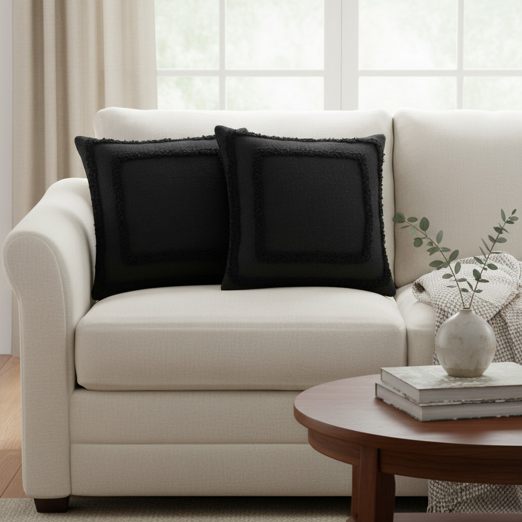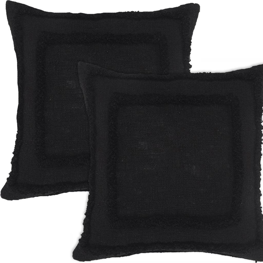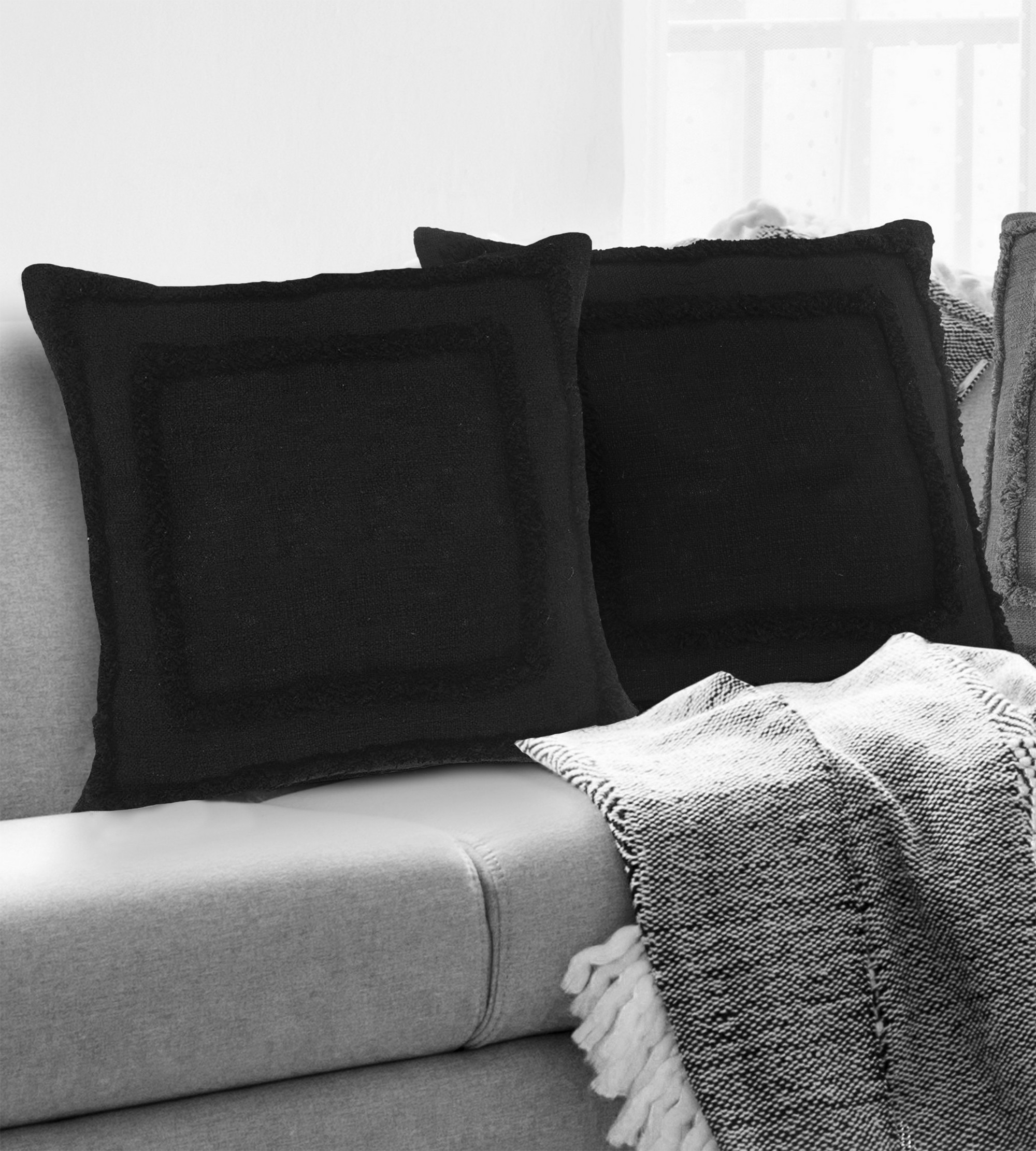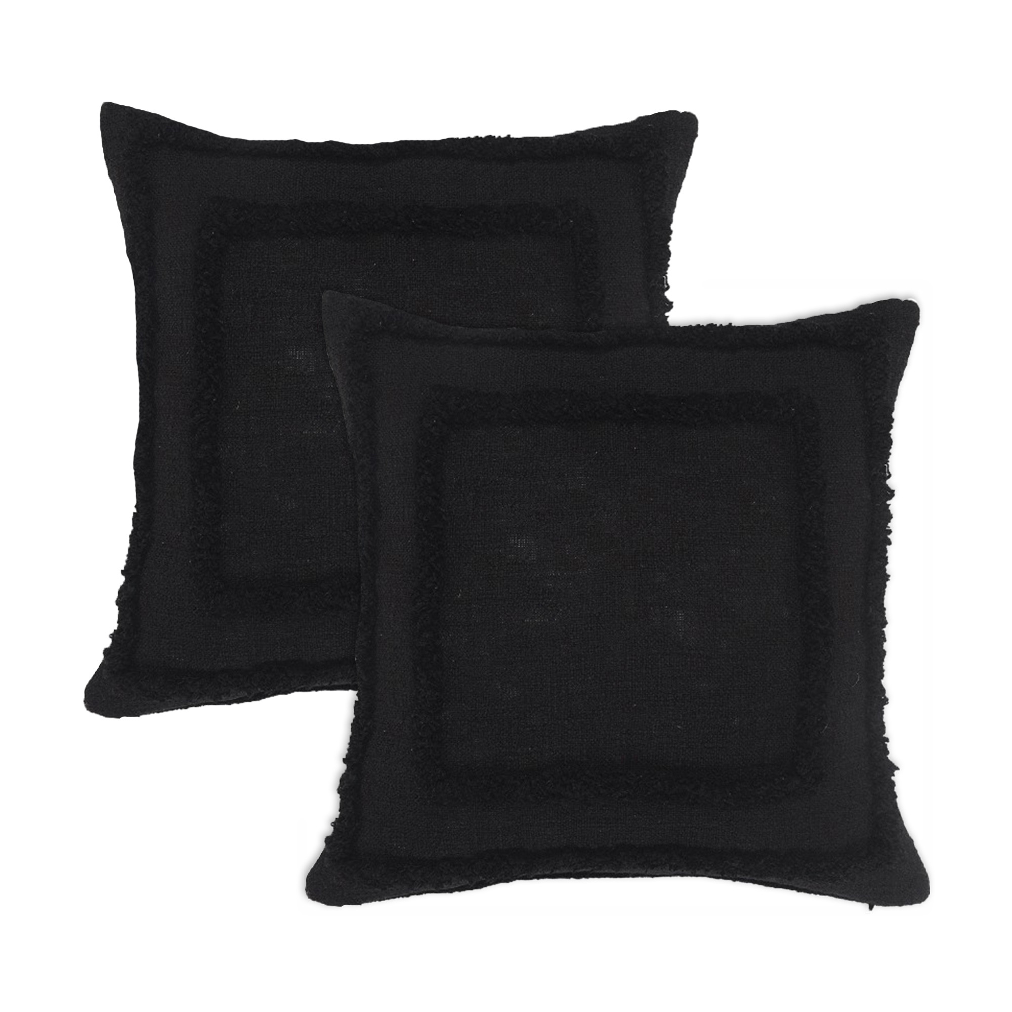 Unique and decorative, this comfortable set of two 20-inch black and smoky black geometric cotton throw pillows will leave a lasting impression. The black and smoky black coloring of the extremely durable and long lasting cotton pillows will add dimension and texture to your space. Super soft and built to hold its shape, this polyfill-filled pillow is a great option. For anyone that loves to decorate or accent their space with color and texture. Decorative throw pillows not only add color and dimension to your space but can be comfy and supportive when you are lounging and cuddling as well. 20.00-inch h x 20.00-inch w x 4.00-inch d.