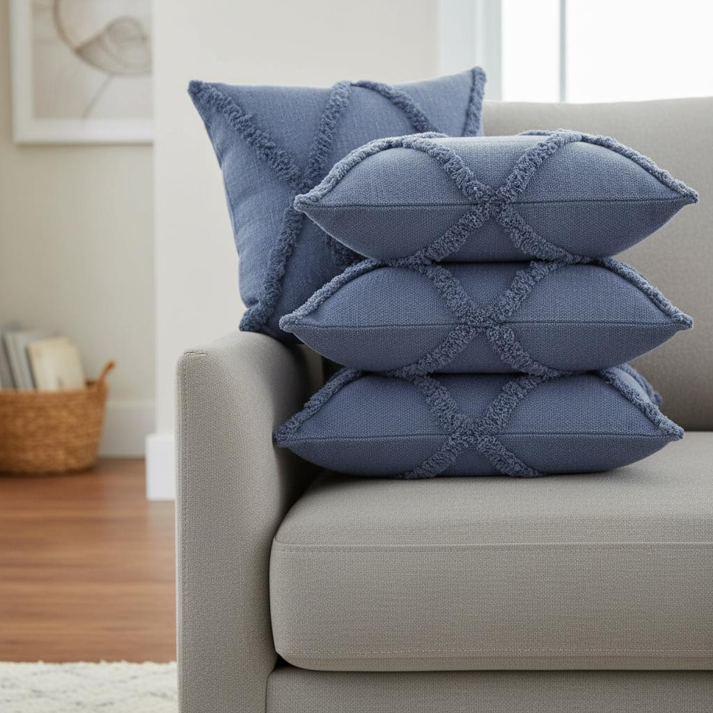 blue diamond cotton throw pillows, diamond cotton throw pillows, cotton throw pillows, 18" denim blue diamond cotton, set 18" denim |