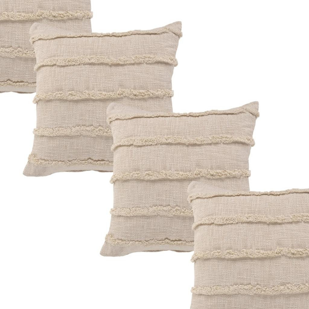 Bring a bit of fashion and zip to your space with this eye-catching and comfy set of four 20-inch brown and beige striped cotton throw pillows. Ultra durable brown and beige cotton has been used to make this decorative pillow set a beautiful look that will stand the test of time. Super soft and built to hold its shape, this polyfill-filled pillow is a great option. Decorative pillows are a great way to change up the look and feel of your space easily and quickly. A great decorative accessory to add color and dimension to your favorite chair, accent your sofa, or to use as part of your bed ensemble. 20.00-inch h x 20.00-inch w x 4.00-inch d.