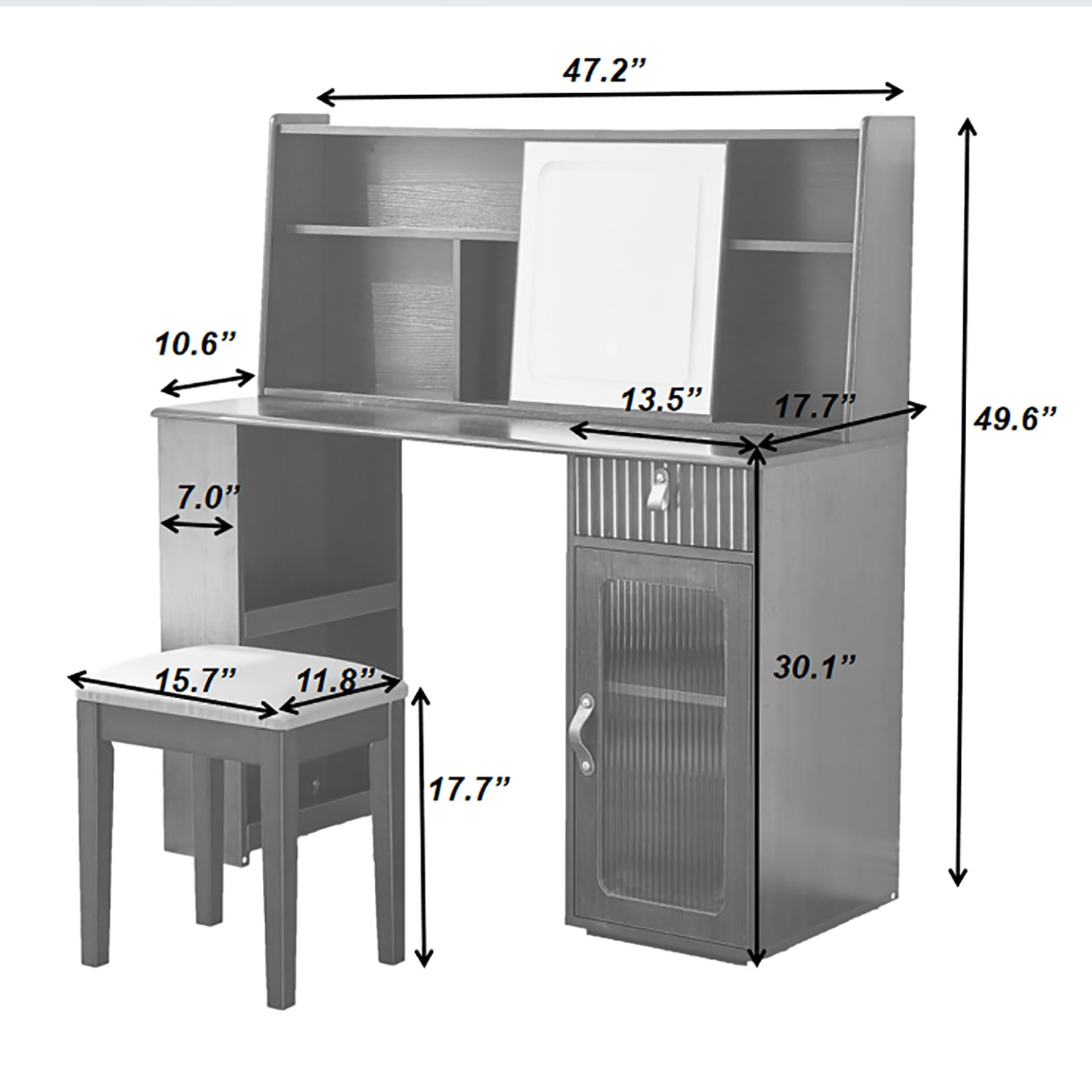 Our 47-inch brown wood mirrored vanity table is designed to make getting ready a breeze. Not only does it add reflection and lustrous beauty to you bedroom or bathroom, as a bonus, this vanity table is also easy to clean. Made with the highest quality construction from mix of durable and genuine solid wood and manufactured woods. Say goodbye to cluttered bathroom counters and hello to our stunning vanity table. Start enjoying a more efficient and stylish beauty routine with this fabulous vanity!. 49.60-inch h x 47.20-inch w x 17.70-inch d.