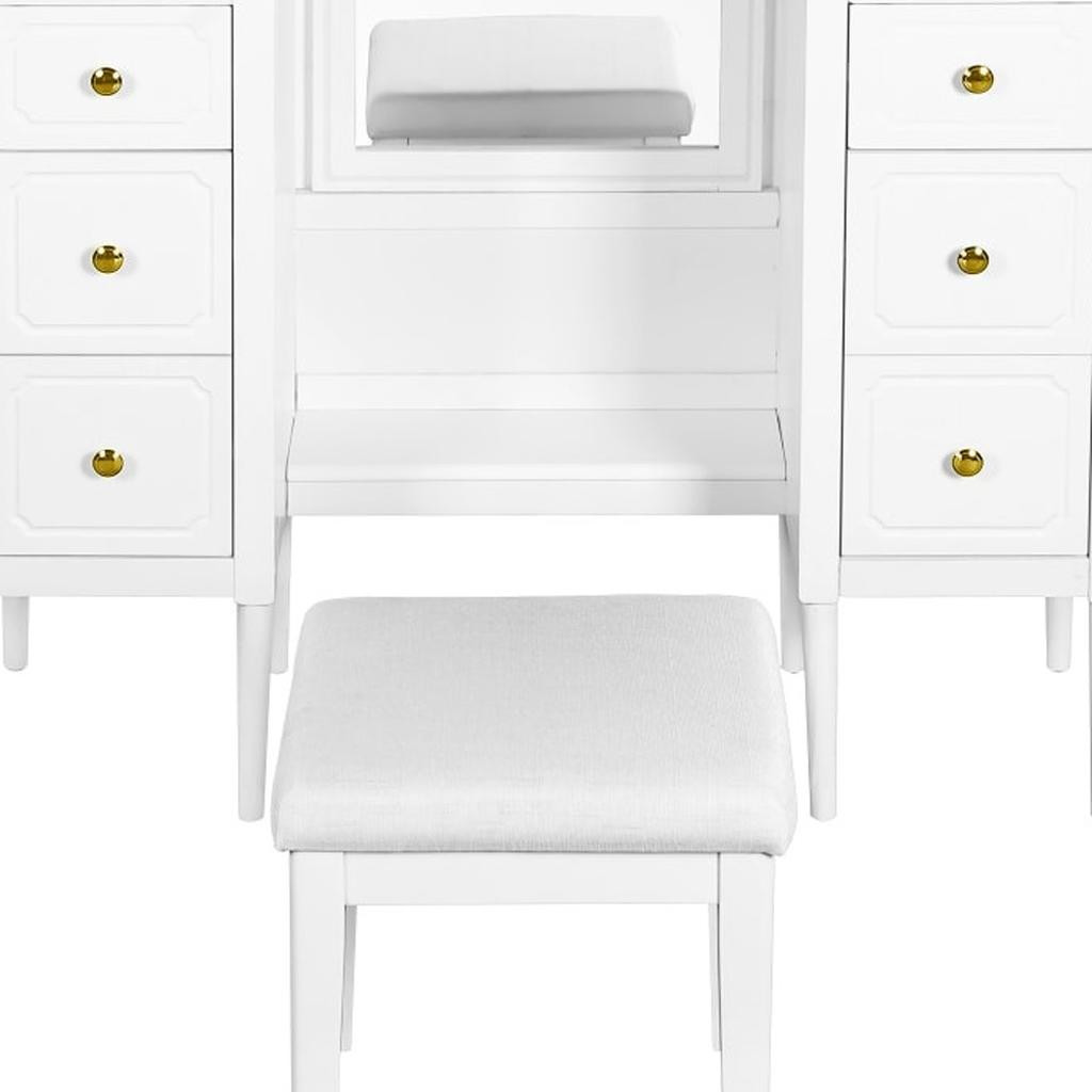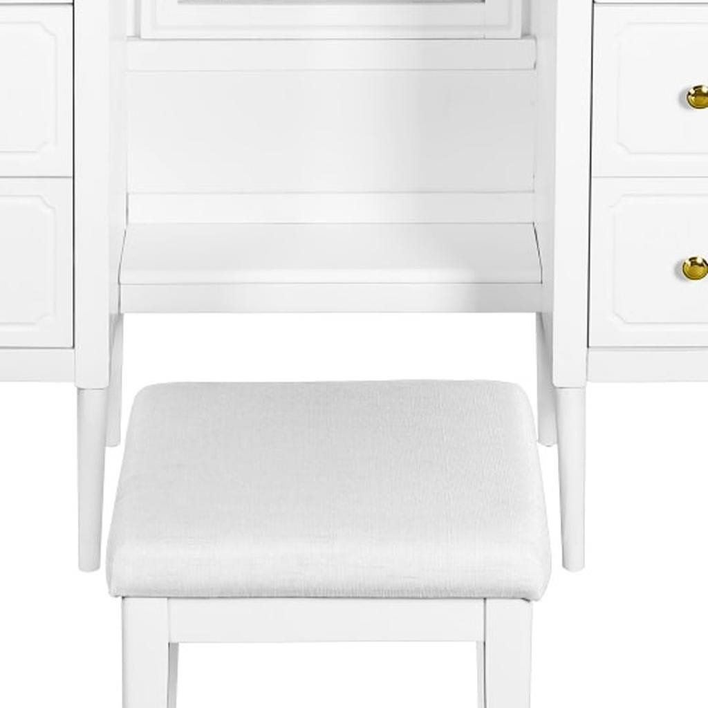 white wood mirrored vanity table, wood mirrored vanity table, 47" white wood mirrored vanity, mirrored vanity table, white wood mirrored vanity |