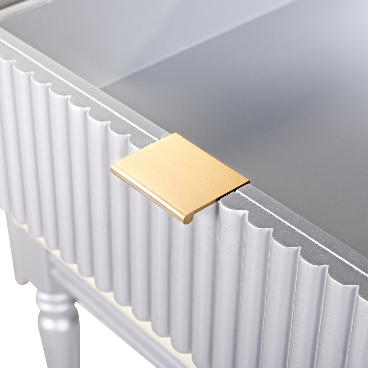 silver wood mirrored vanity table, wood mirrored vanity table, 39" silver wood mirrored vanity, mirrored vanity table, silver wood mirrored vanity |