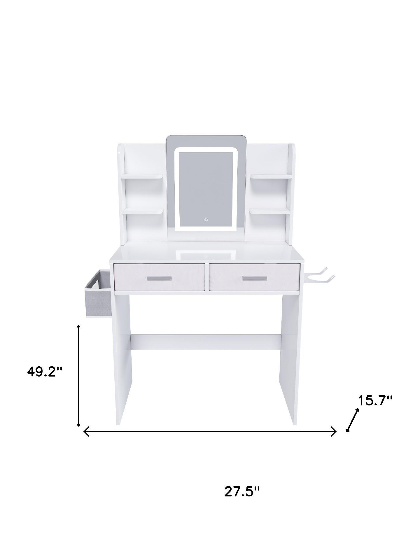 Our 28-inch white wood mirrored vanity table is designed to make getting ready a breeze. Add a touch of modern style to your bedroom or bathroom with this fabulous sparkling mirrored vanity table. This table features a beautiful blend of solid wood and manufactured woods. Experience a new level of luxury and convenience. Get ready in style with our beautifully designed vanity table!. 49.20-inch h x 27.50-inch w x 15.70-inch d.