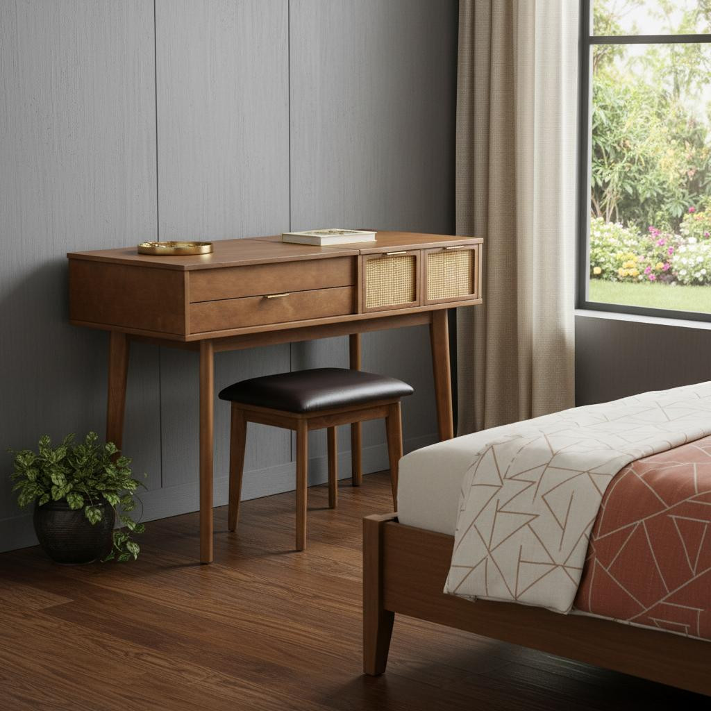 brown wood mirrored vanity table, wood mirrored vanity table, 43" brown wood mirrored vanity, brown wood mirrored vanity, mirrored vanity table |