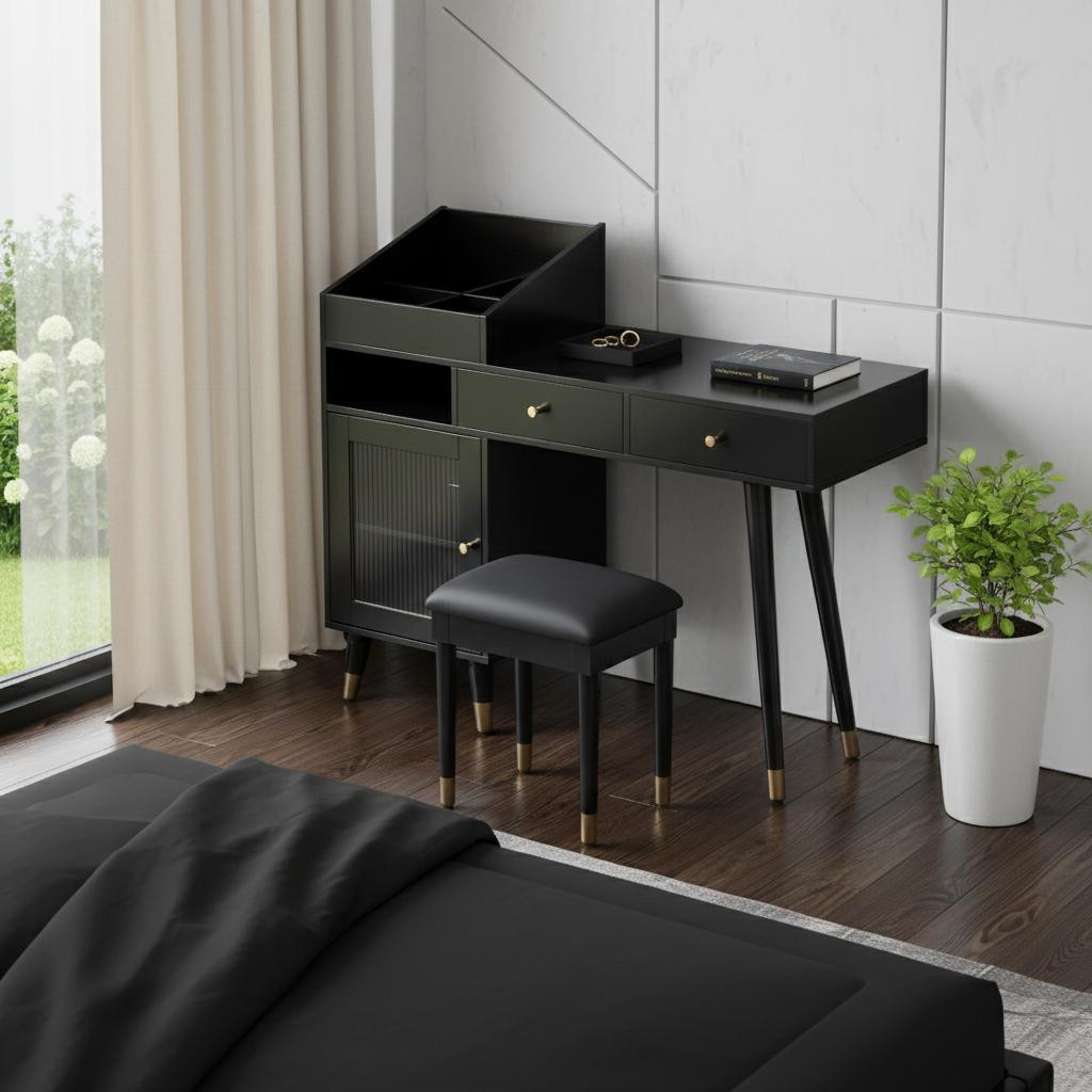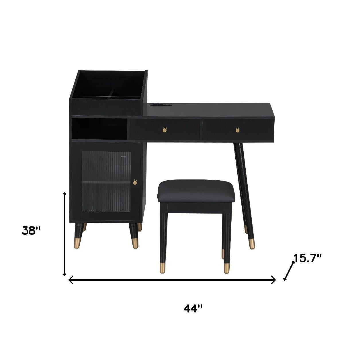 Upgrade your beauty routine with our versatile 44-inch black wood vanity table. Made with the highest quality construction from mix of durable and genuine solid wood and manufactured woods. Say goodbye to cluttered bathroom counters and hello to our stunning vanity table. Start enjoying a more efficient and stylish beauty routine with this fabulous vanity!. 38.00-inch h x 44.00-inch w x 15.70-inch d.