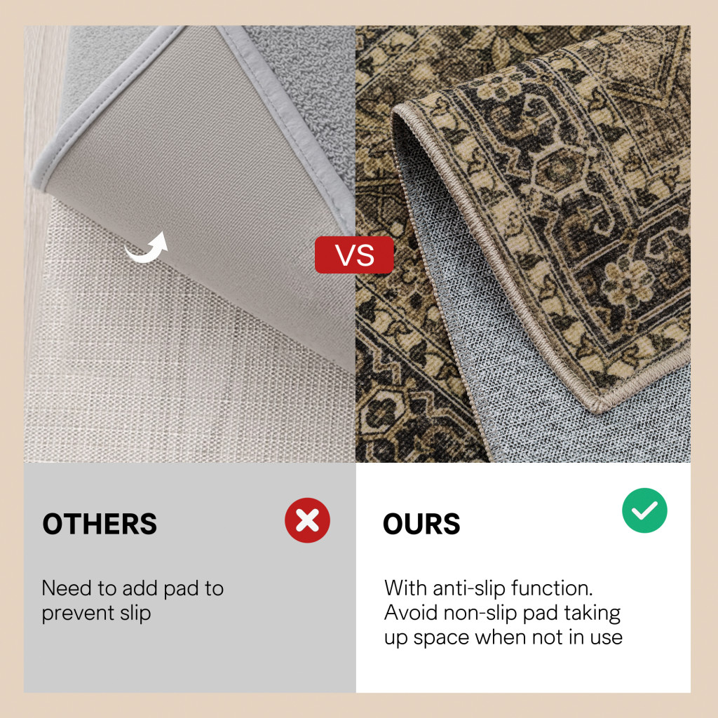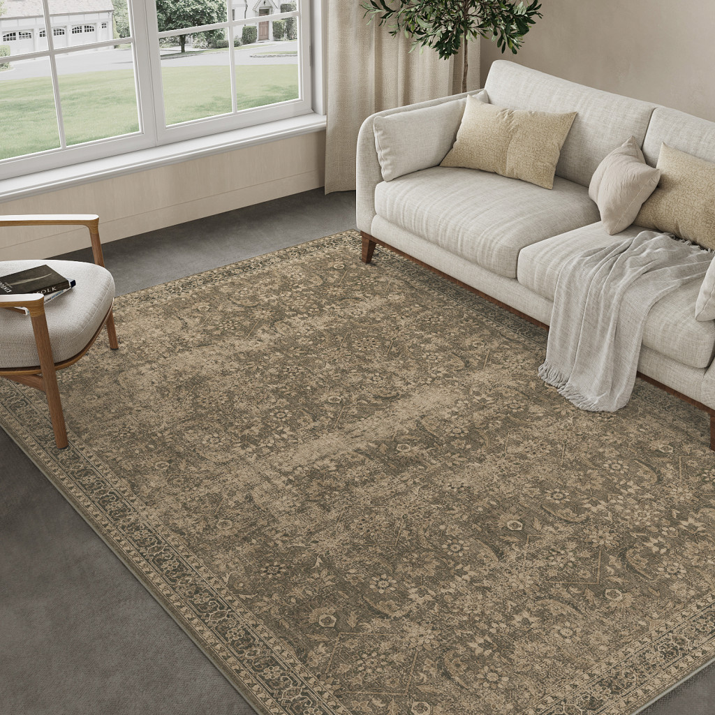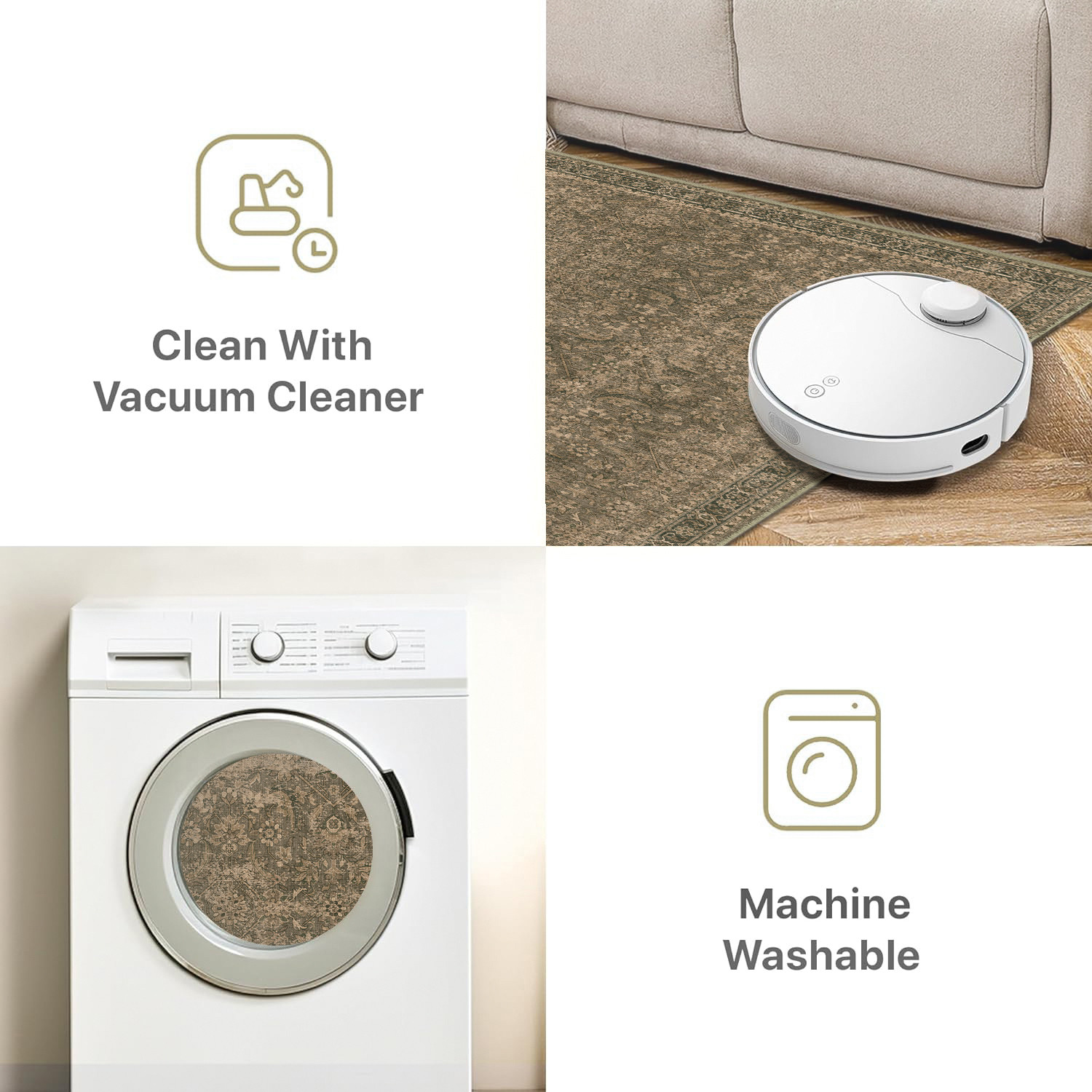 Vintage brown floral design washable area rug, Washable area rug, Vintage washable area rug |