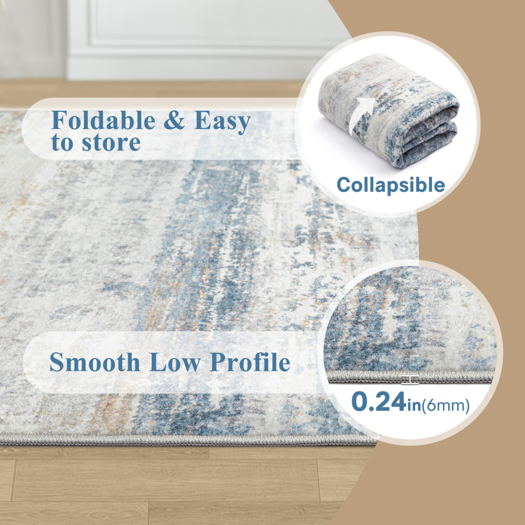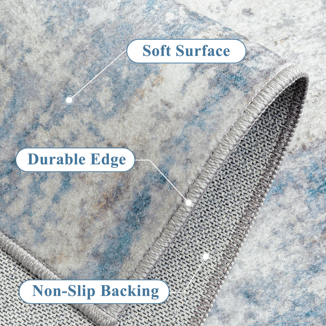Add some artistry to your room with this 8-foot x 10-foot blue red and gray abstract washable area rug. Ideal for spaces with kids and pets, this rug is stain resistant to help repel dirt and spilled liquids. Built to last, this rug crafted from polyester fibers is known for its durability and long lasting appeal. Rugs are a great way to showcase your style, hide imperfections, warm your home and reduce noise. This larger sized, traditional styled rug is ready to create a focal point or statement piece in your room. 120.00-inch h x 96.00-inch w x 0.30-inch d.